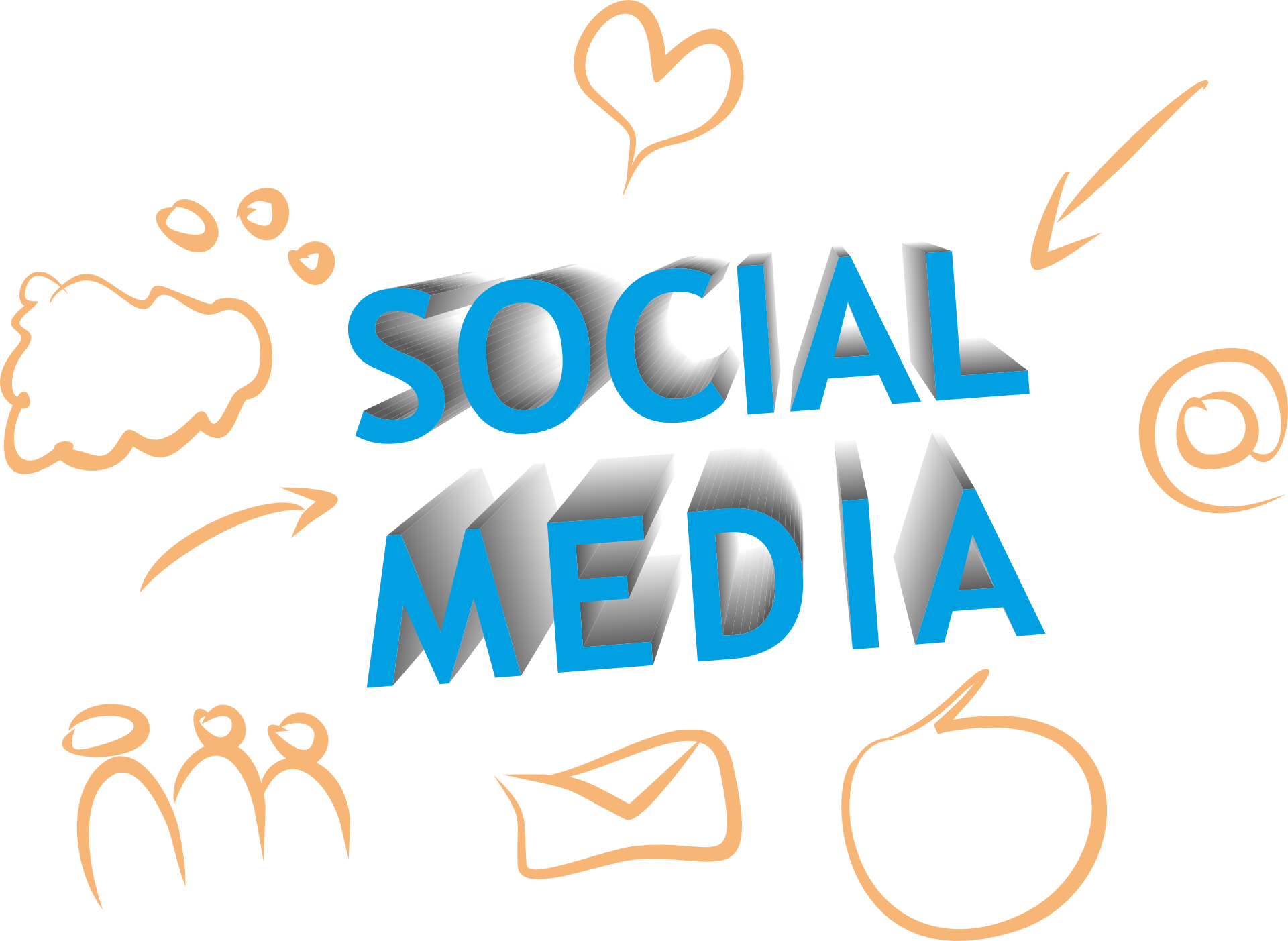 Free image/png, Resolution: 1920x1403, File size: 277Kb, orange funny drawing of social media items picture with tags: social, social media, internet, the internet, network, hotel, cloud