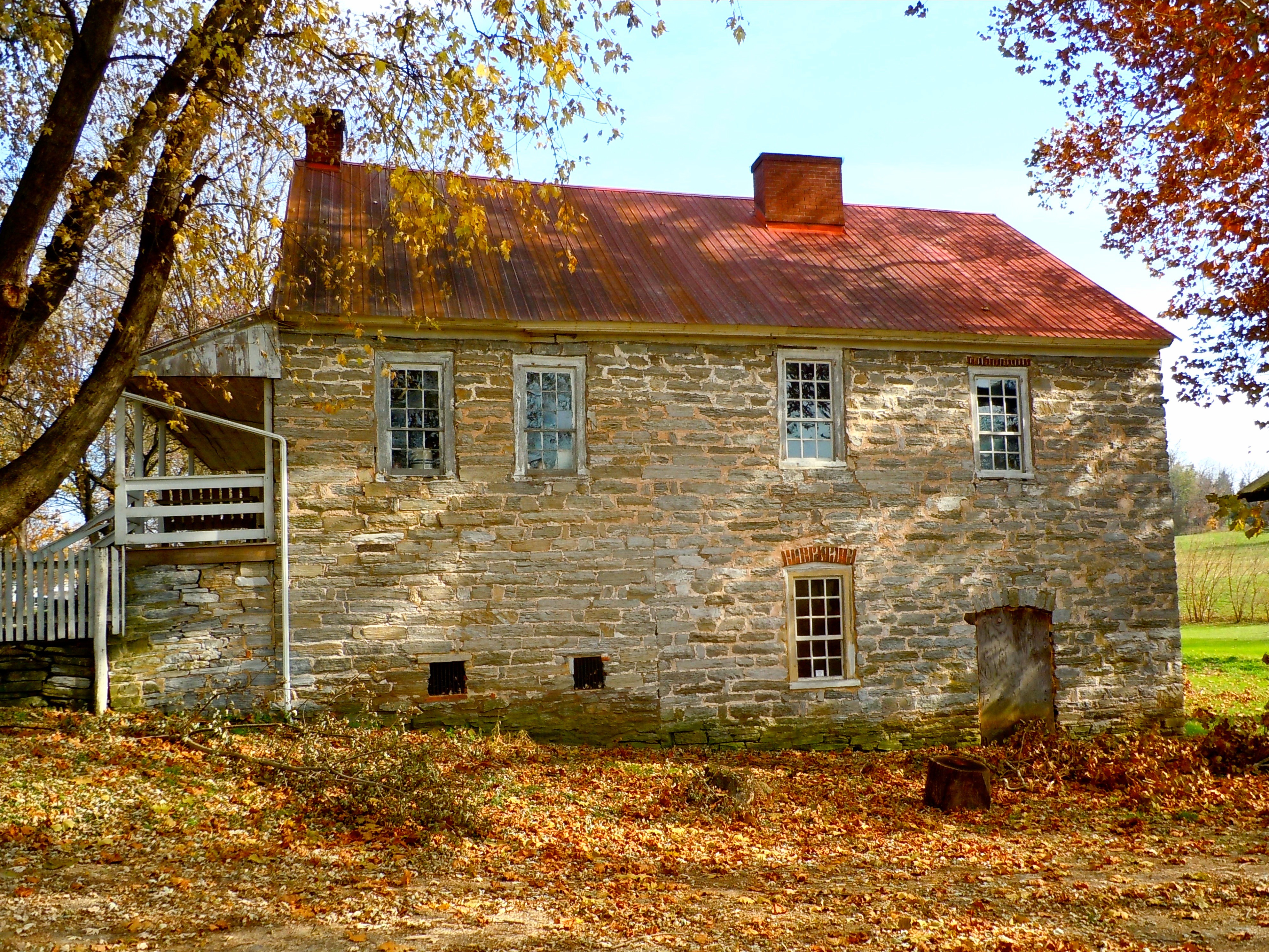 Free image/jpeg, Resolution: 3969x2978, File size: 4.19Mb, old stone house with red roof at fall, usa, pennsylvania, schaefferstown picture with tags: schaefferstown, pennsylvania, house, home, farm, rural