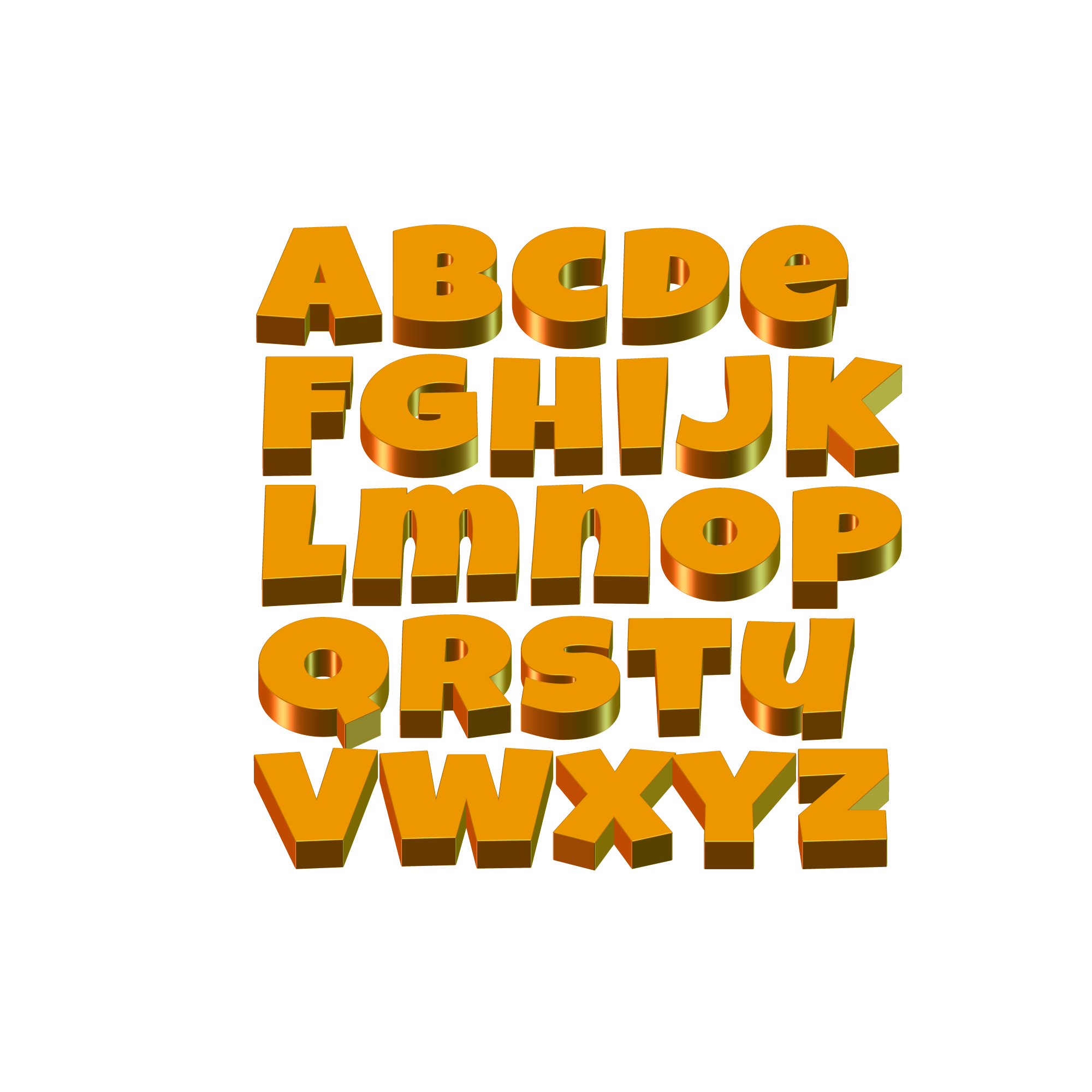 Free image/png, Resolution: 2000x2000, File size: 238Kb, yellow 3d letters of the English alphabet on white background picture with tags: alphabet, letters, alphabetically, read, training, school, yellow, 3d, white background