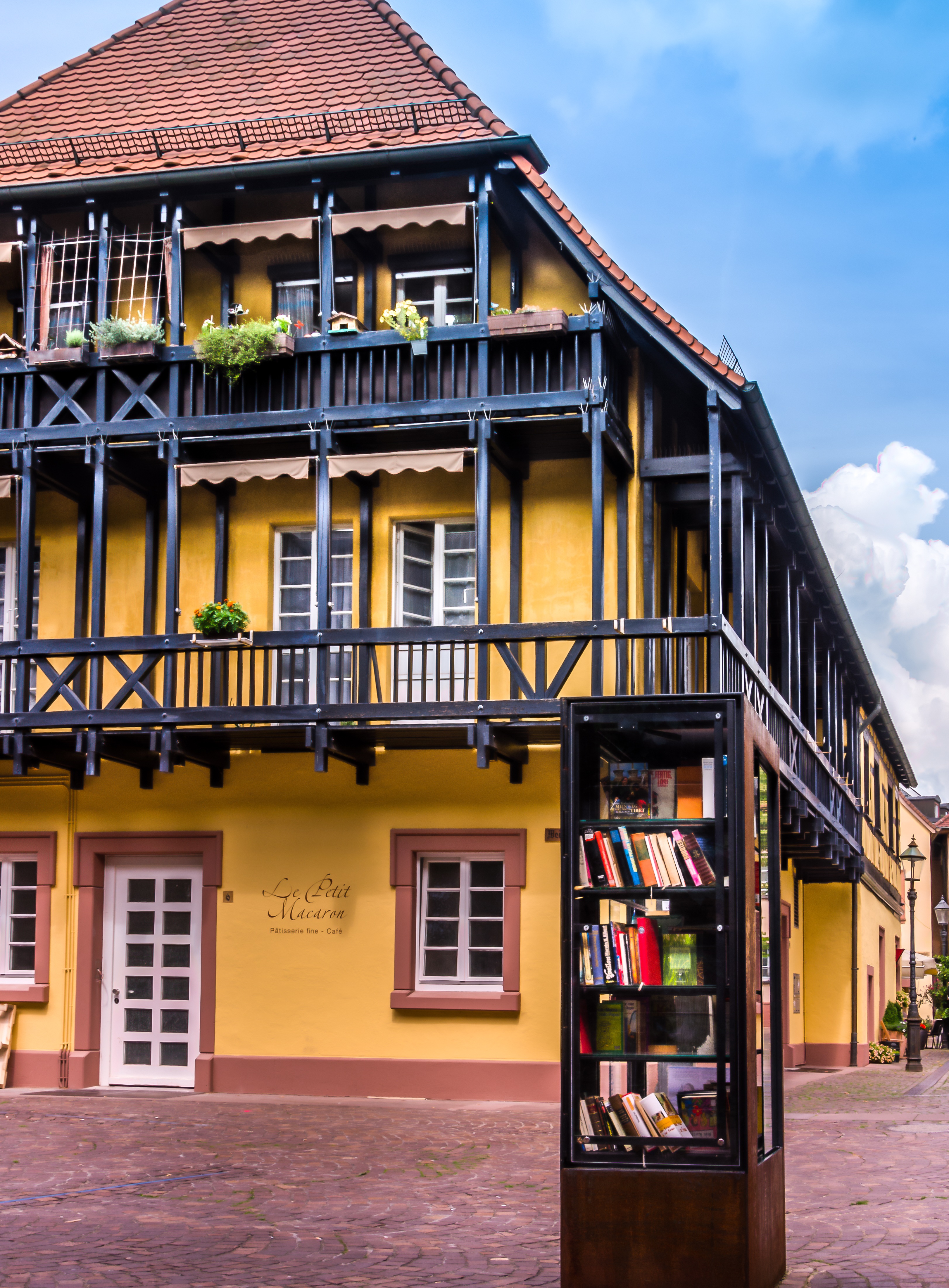 Free image/jpeg, Resolution: 3246x4408, File size: 3.44Mb, book booth at colorful old building, germany, ettlingen picture with tags: building, home, yellow, architecture, germany