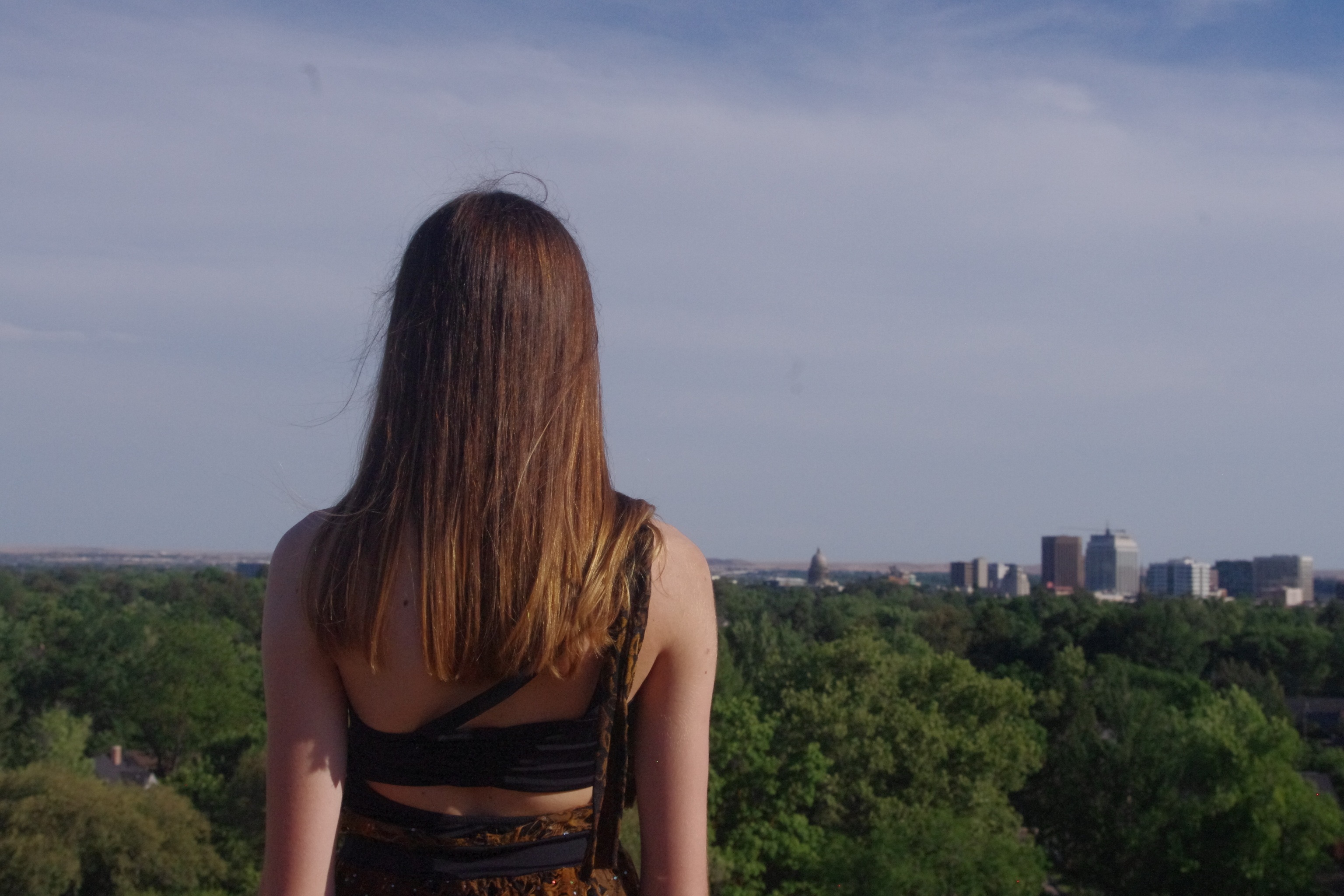 Free image/jpeg, Resolution: 3072x2048, File size: 1.15Mb, back view of long haired girl looking at city picture with tags: girl, vision, city, brunette, forward, teenager