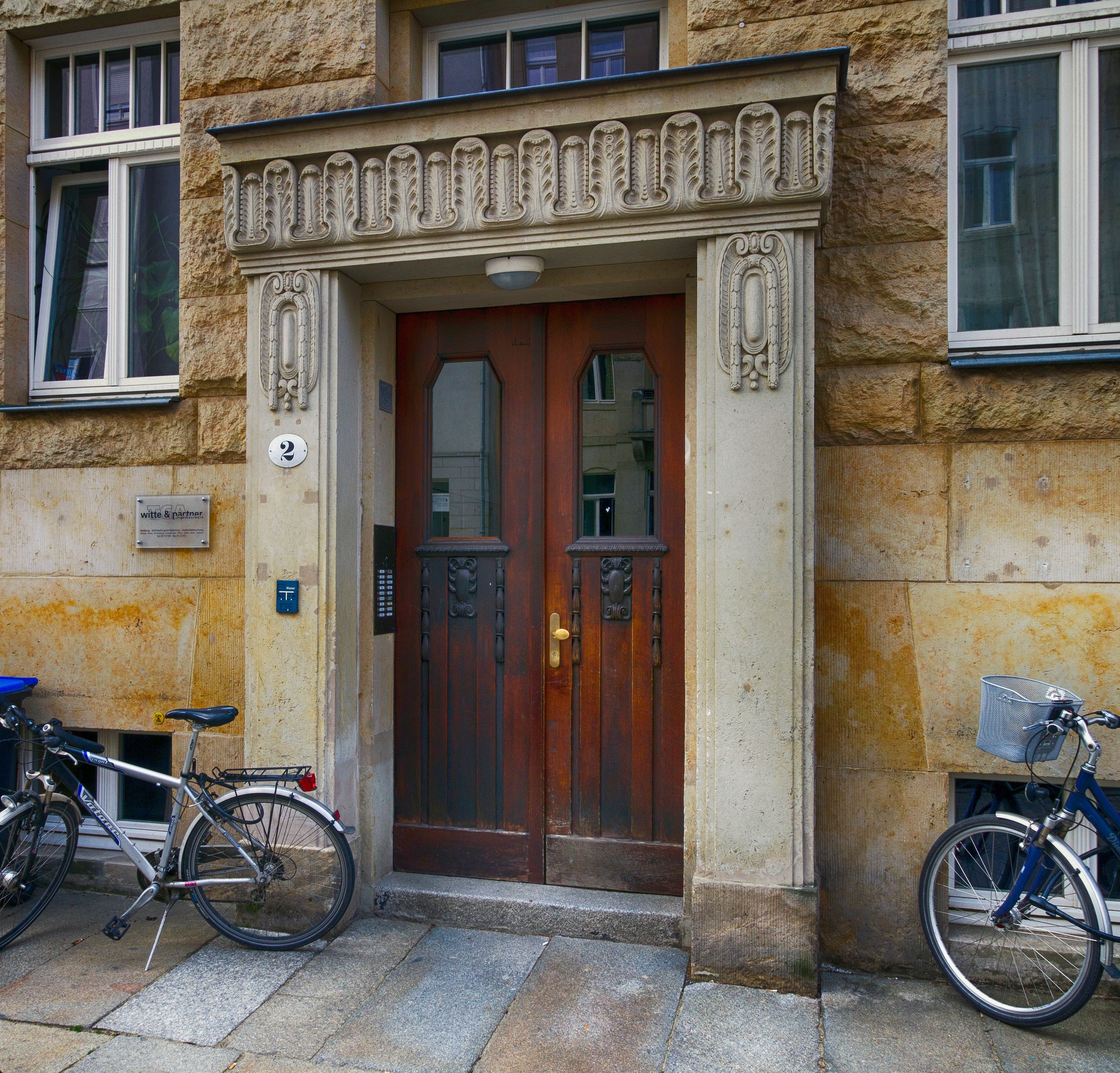 Free image/jpeg, Resolution: 3402x3259, File size: 3.94Mb, bicycles on street at door of old building, germany, dresden picture with tags: dresden, germany, building, door, bicycles