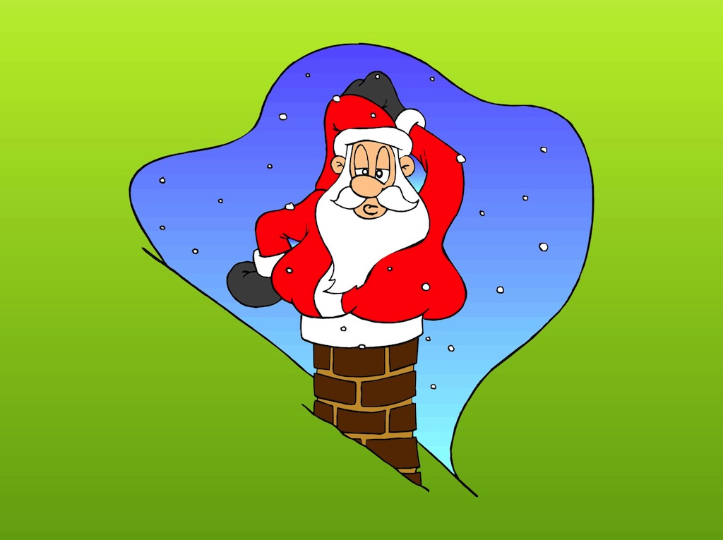 Free image/jpeg, Resolution: 1024x765, File size: 95Kb, Santa In Chimney drawing picture with tags: santa, chimney, roof, green, background