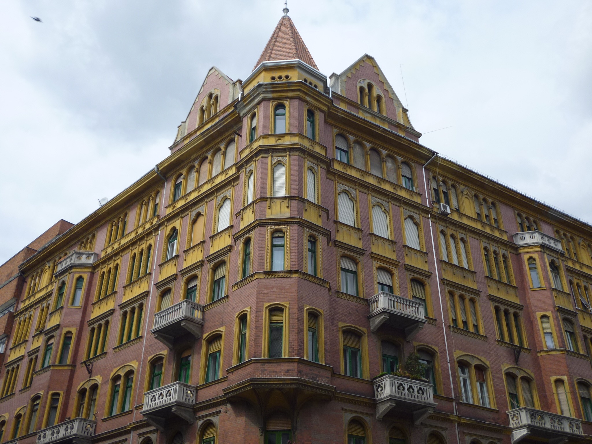 Free image/jpeg, Resolution: 2048x1536, File size: 796Kb, Art Nouveau facade of corner building picture with tags: corner, building, fancy, facade, cloudy