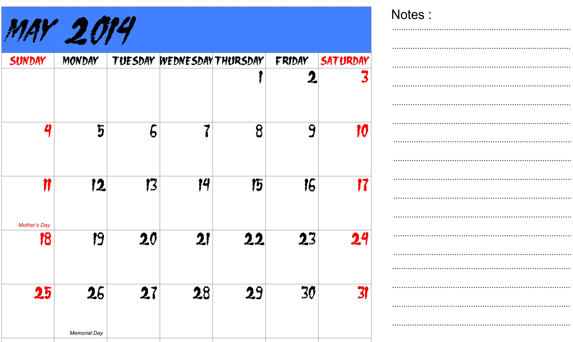 Free image/gif, Resolution: 2000x1195, File size: 148Kb, May 2019 Calendar clipart picture with tags: printable, calendar, may, 2014, day, memorial, mother