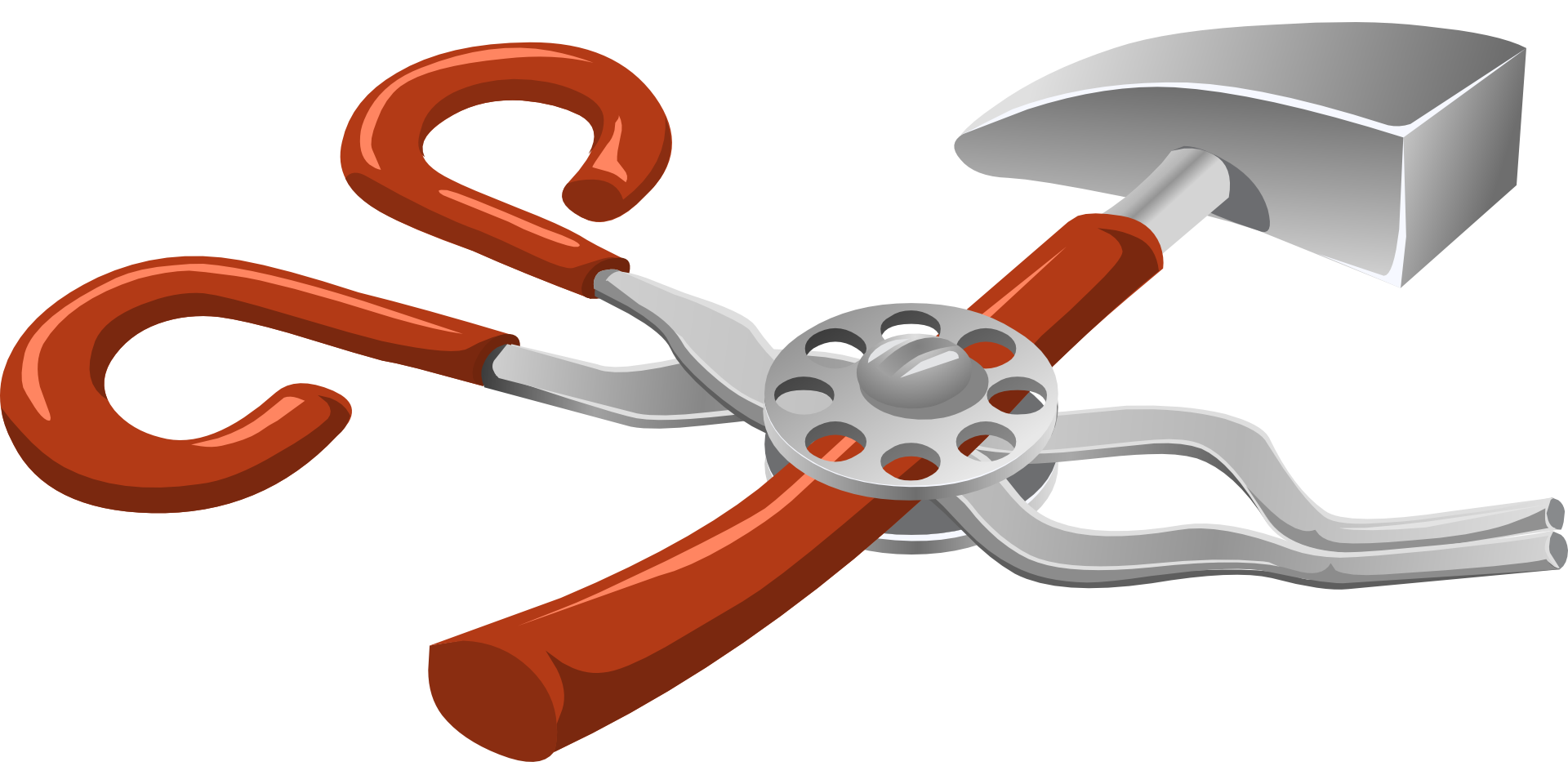 Free image/png, Resolution: 1920x960, File size: 190Kb, illustration of hand tools, hammer and pliers picture with tags: tools, hammer, pliers, equipment, building, working, construction, clipart