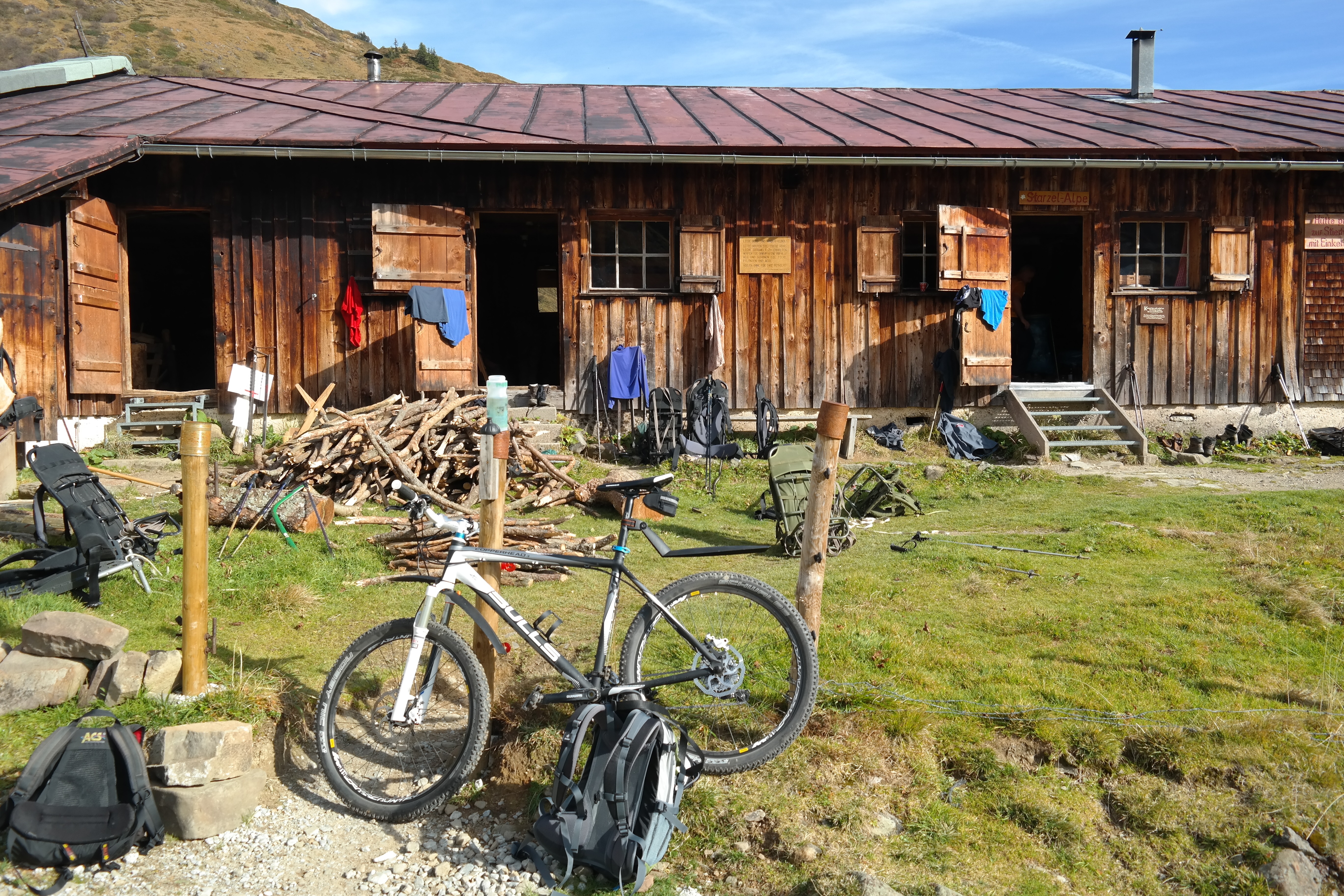 Free image/jpeg, Resolution: 5472x3648, File size: 5.5Mb, mountain bike near a log cabin picture with tags: mountain bike, bike, mountain bike tour