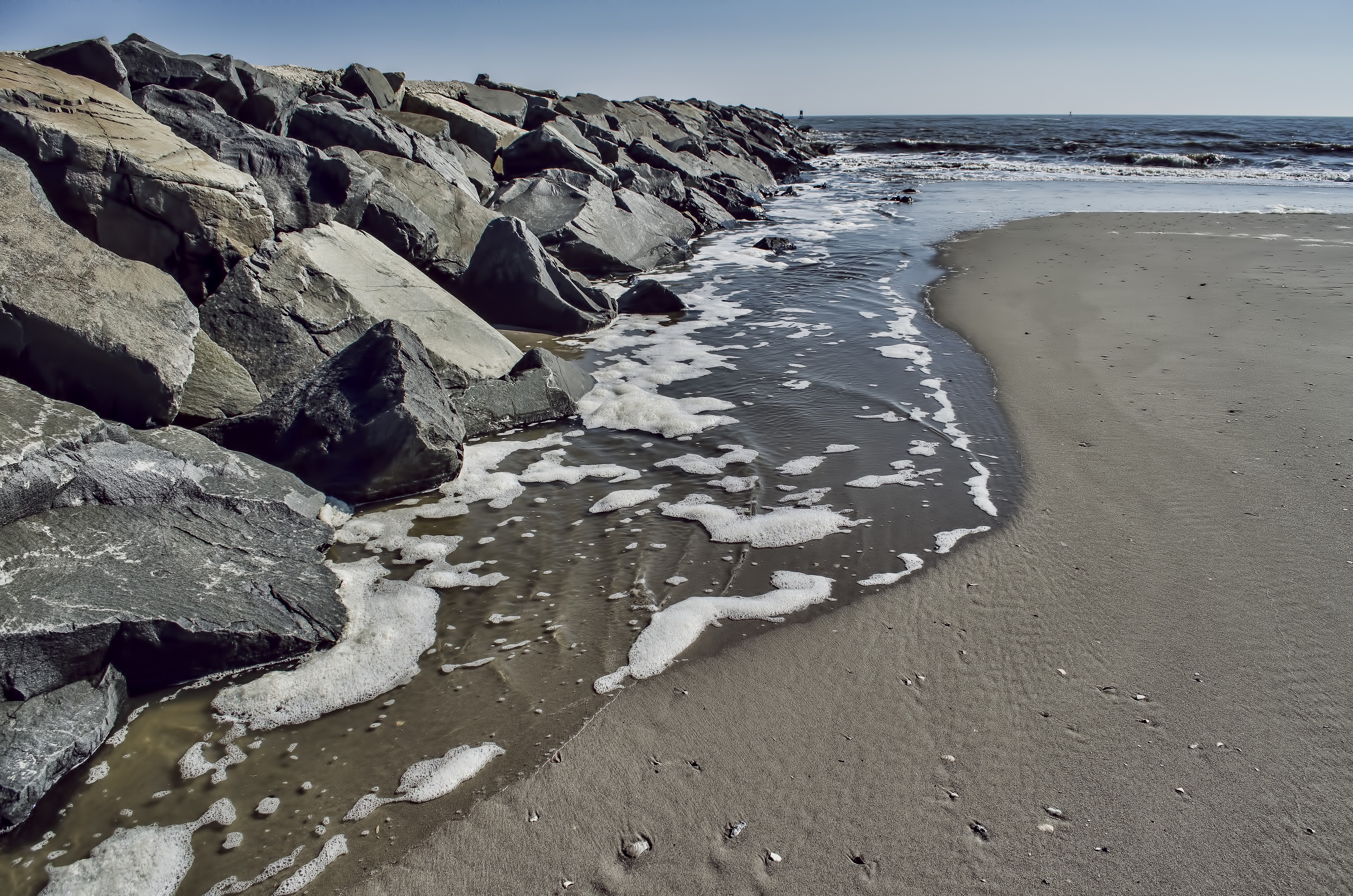 Free image/jpeg, Resolution: 4928x3264, File size: 7.54Mb, rocks on sandy coast of ocean, usa, New Jersey, atlantic city picture with tags: beach, coast, ocean, rocks, atlantic city