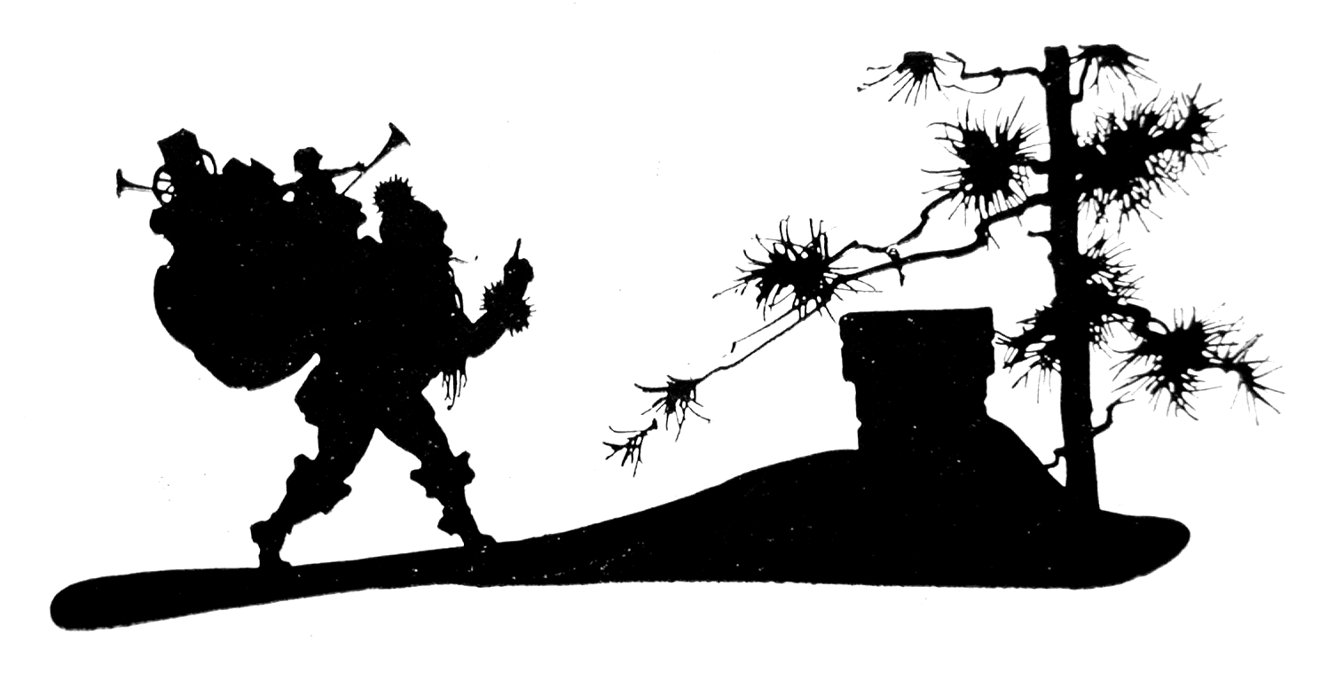 Free image/gif, Resolution: 1488x759, File size: 97Kb, Santa Claus Sleigh Silhouette drawing picture with tags: sleigh, roof, santa, claus, silhouette
