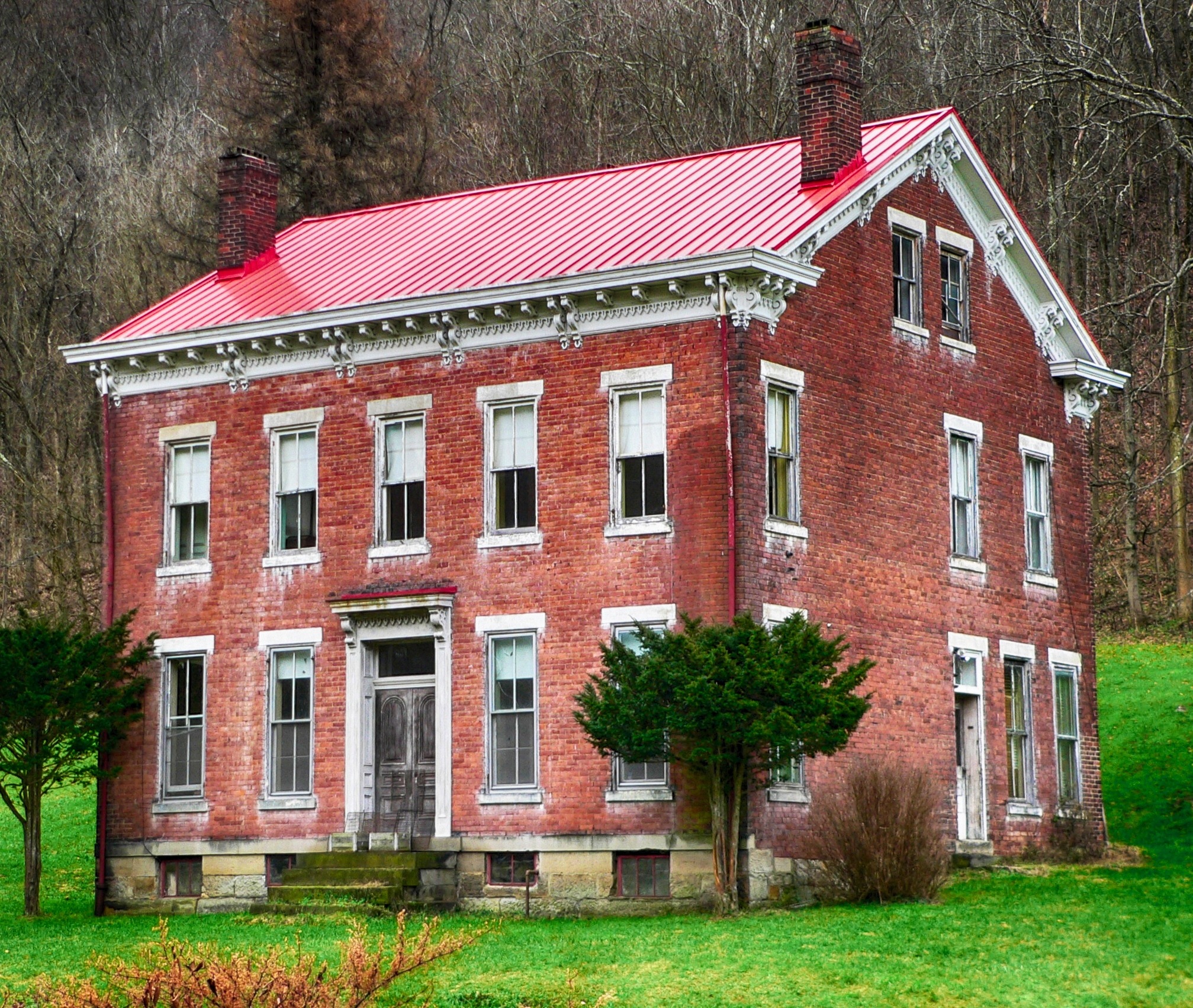 Free image/jpeg, Resolution: 2015x1703, File size: 1.26Mb, old brick building with new red roof at forest, usa, west virginia, wheeling picture with tags: wheeling, west virginia, house, home, historic, historical