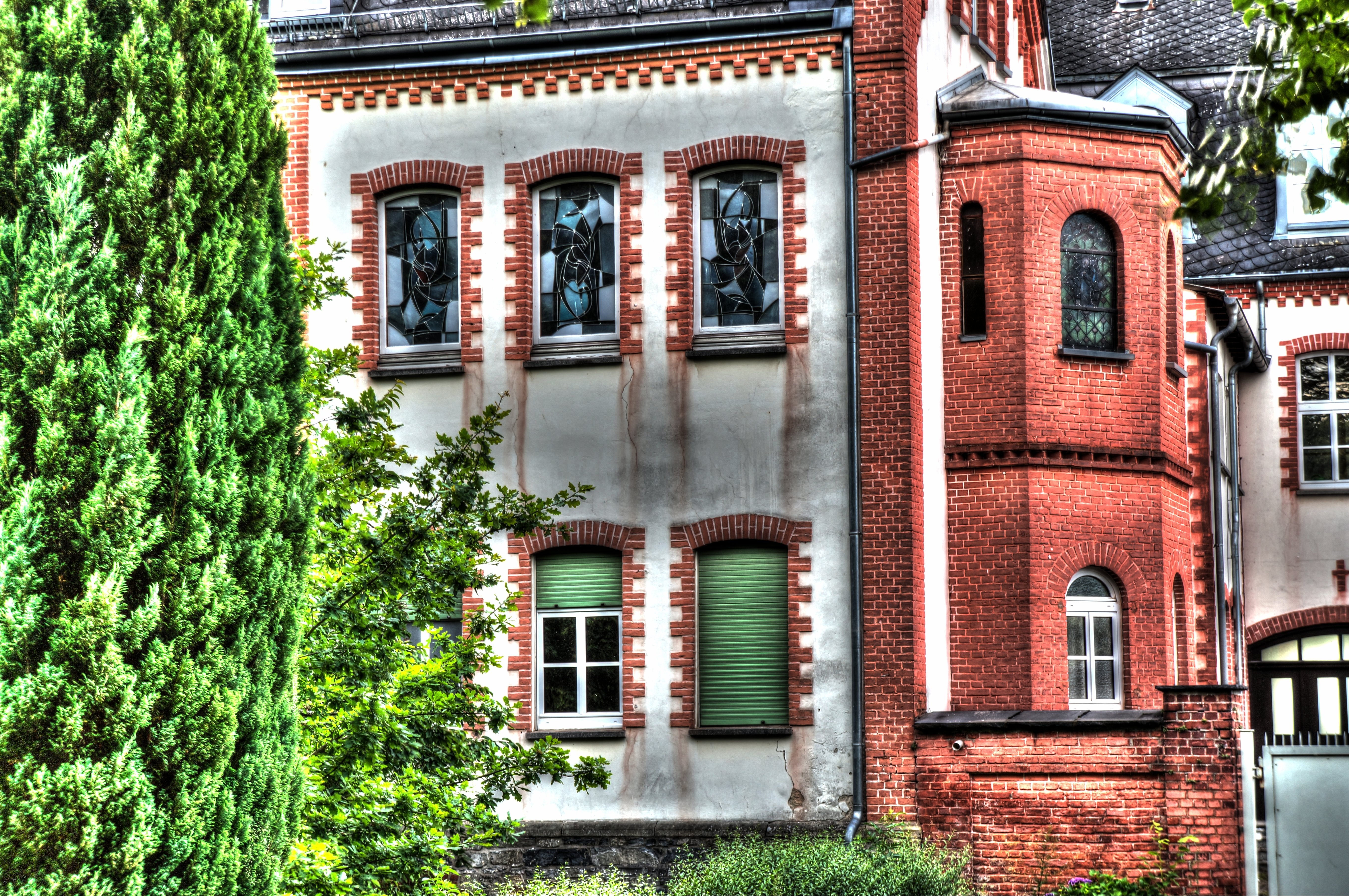 Free image/jpeg, Resolution: 5443x3615, File size: 5.45Mb, facade of monastery building with mosaic windows picture with tags: monastery, building, facade, herrschbach