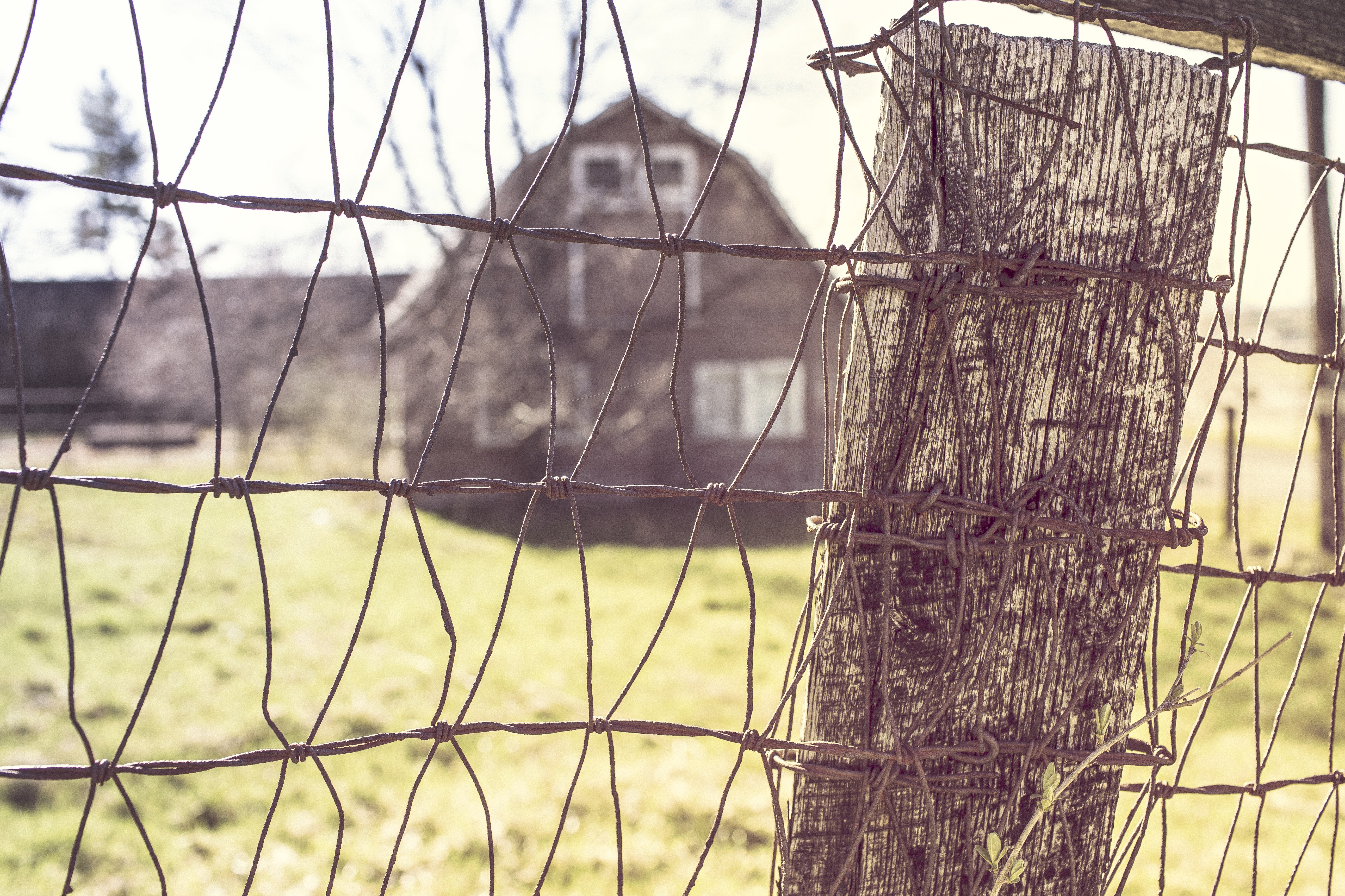 Free image/jpeg, Resolution: 5163x3442, File size: 7.2Mb, wire mesh near the farmhouse picture with tags: farm, barn, fence, countryside, rural, wire, wood, field