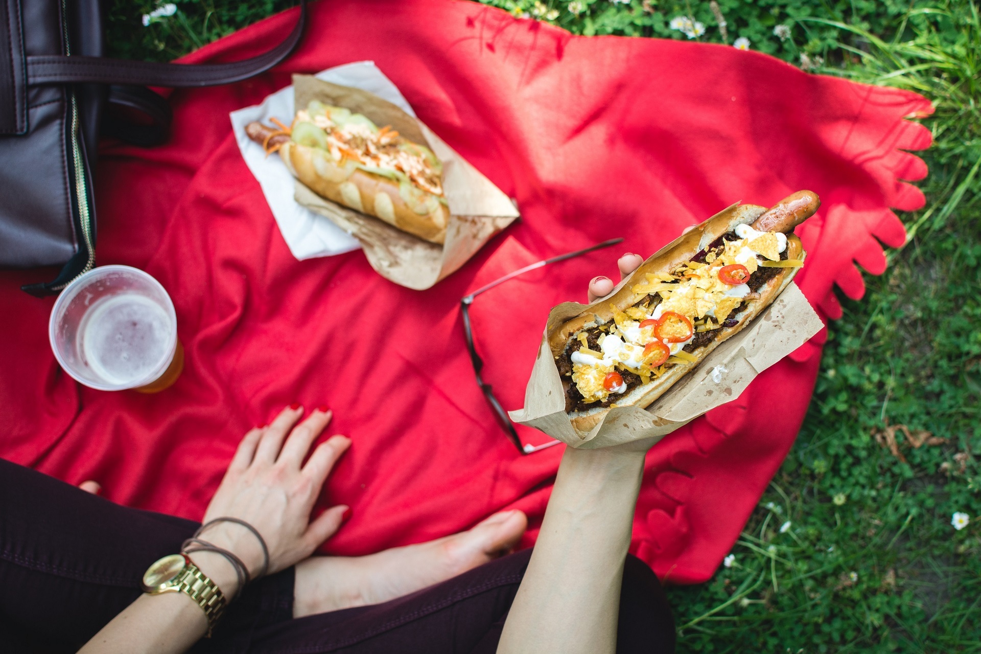 Free image/jpeg, Resolution: 1920x1279, File size: 639Kb, picnic on a field picture with tags: picnic, hot dog, meal, tasty, lunch, ground, sandwich