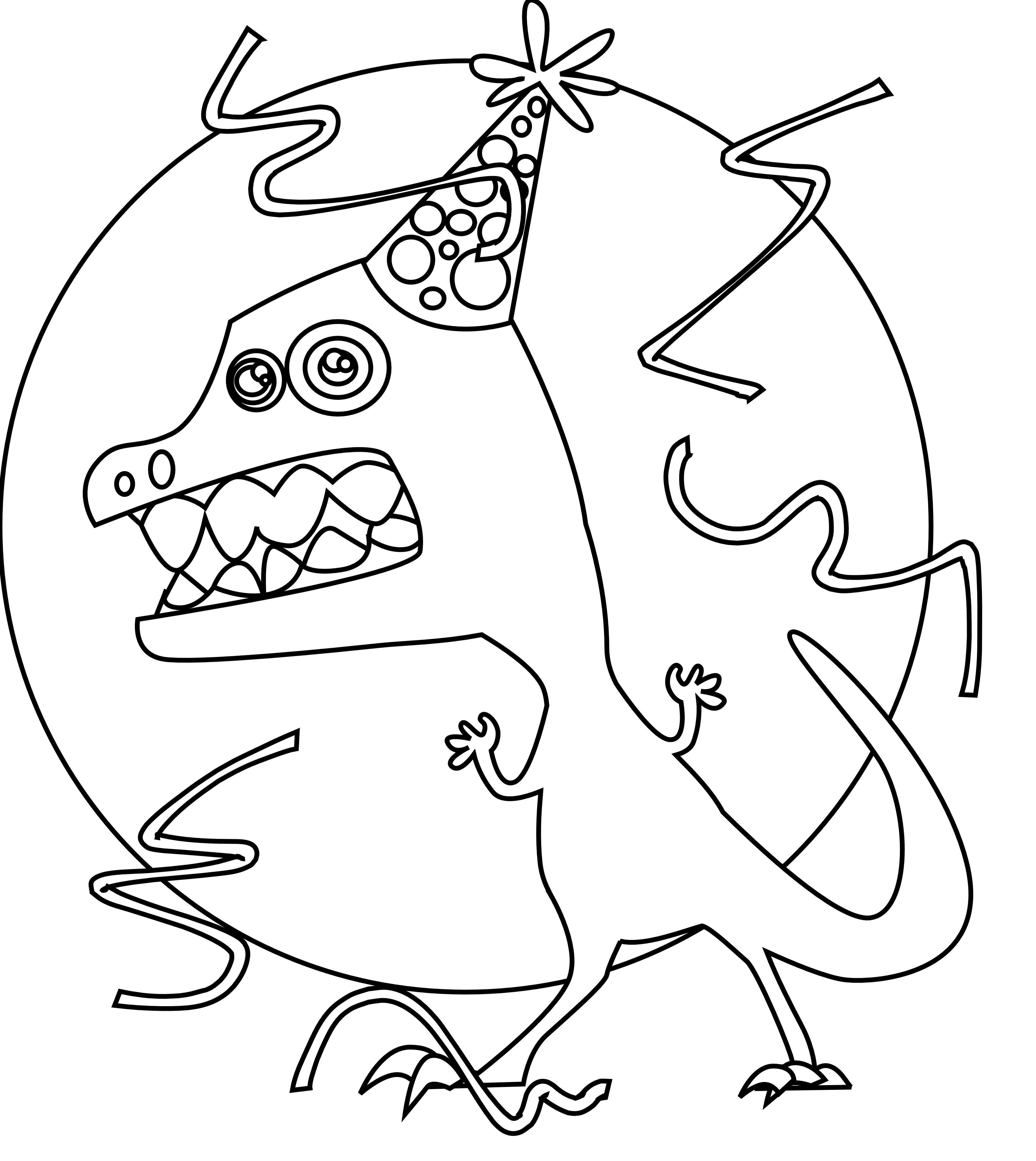 Free image/png, Resolution: 3333x3734, File size: 854Kb, cartoon dinosaur in party hat, outline picture with tags: cartoon, dinosaur, party, hat, outline