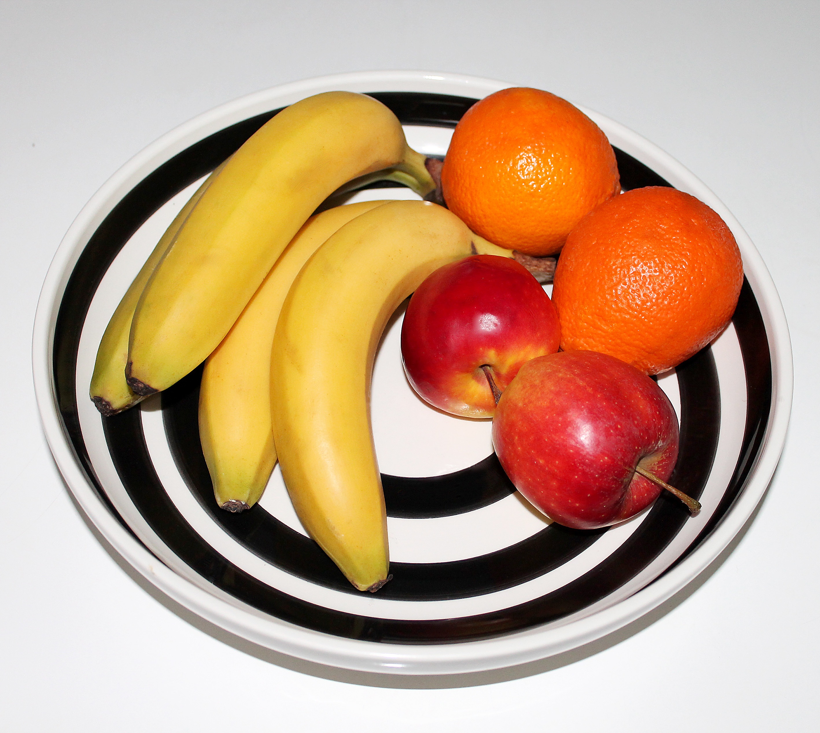 Free image/jpeg, Resolution: 2835x2536, File size: 1Mb, bananas, oranges and apples on the plate picture with tags: fruit, fruit bowl, oranges, health, bananas, apples