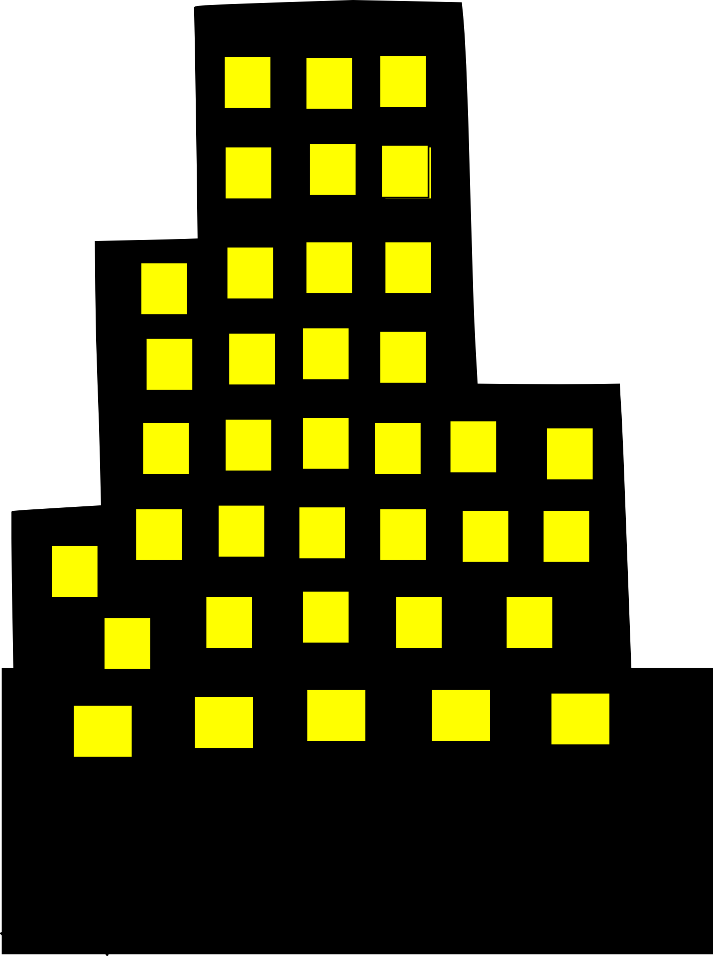 Free image/png, Resolution: 1432x1920, File size: 26Kb, black high-rise building with yellow windows, illustration picture with tags: skyscraper, downtown, urban, city, cityscape