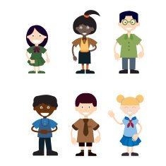 Free image/jpeg, Resolution: 235x235, File size: 24Kb, Young People N6 picture with tags: teenager, boy scout, girl scout, education, cheerful, cartoon, school year, vector, teenage girls, university student, learning, schoolgirl, backgrounds, girls, classroom, going to class, group of people, people, instructor, happiness, characters, uniform, elementary age, boys