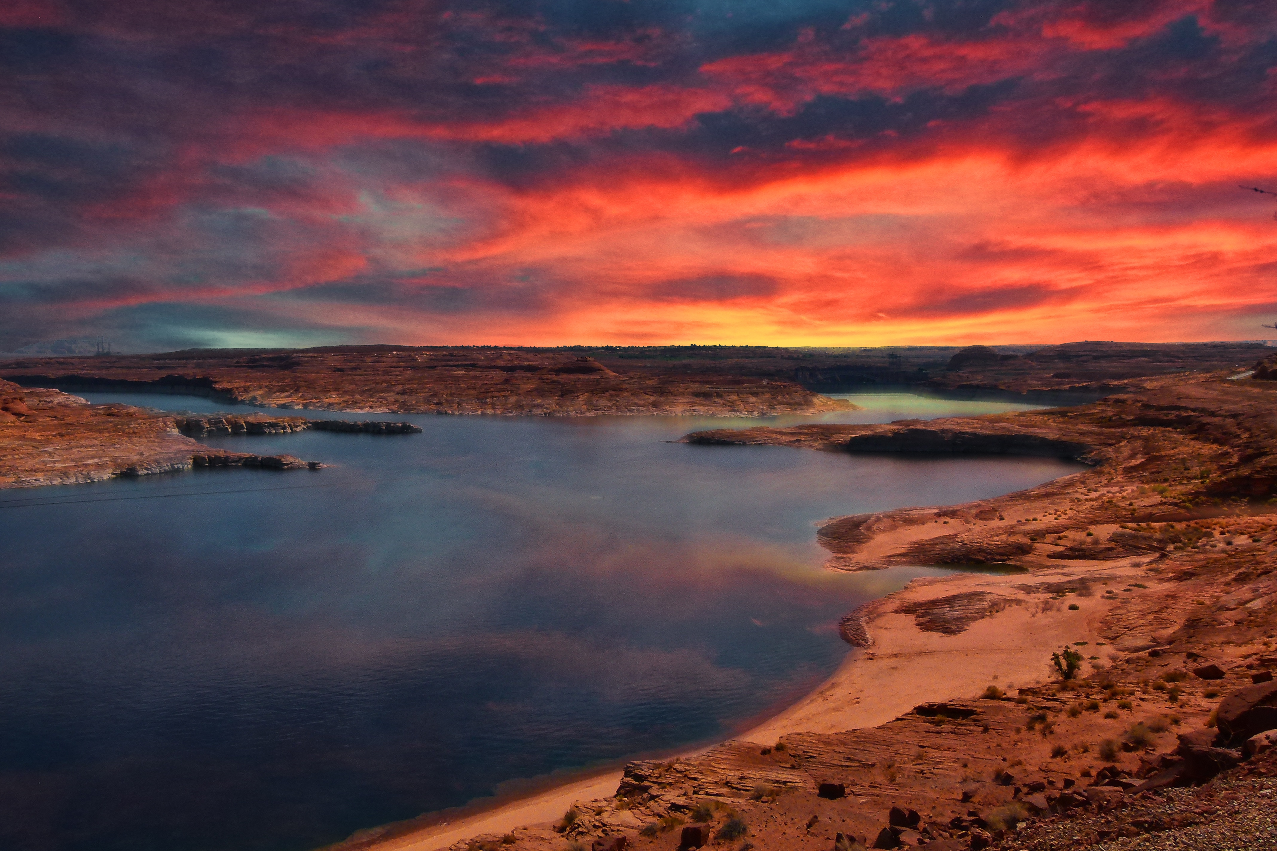 Free image/jpeg, Resolution: 4272x2848, File size: 2.92Mb, lake powell, arizona picture with tags: lake powell, arizona, sunrise, glowing, clouds
