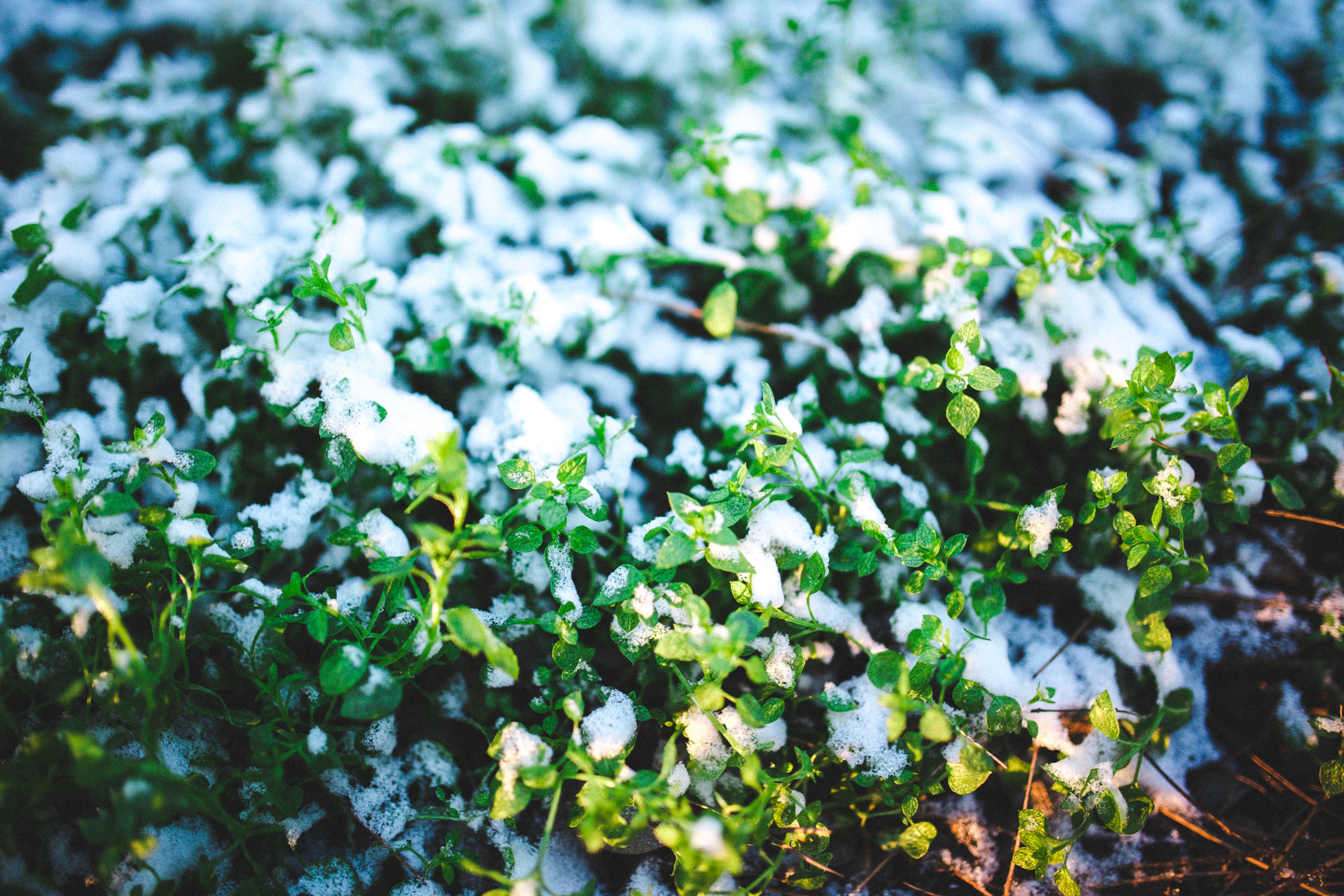 Free image/jpeg, Resolution: 5472x3648, File size: 5.44Mb, first snow on green plants picture with tags: green, plants, snow, fresh, white