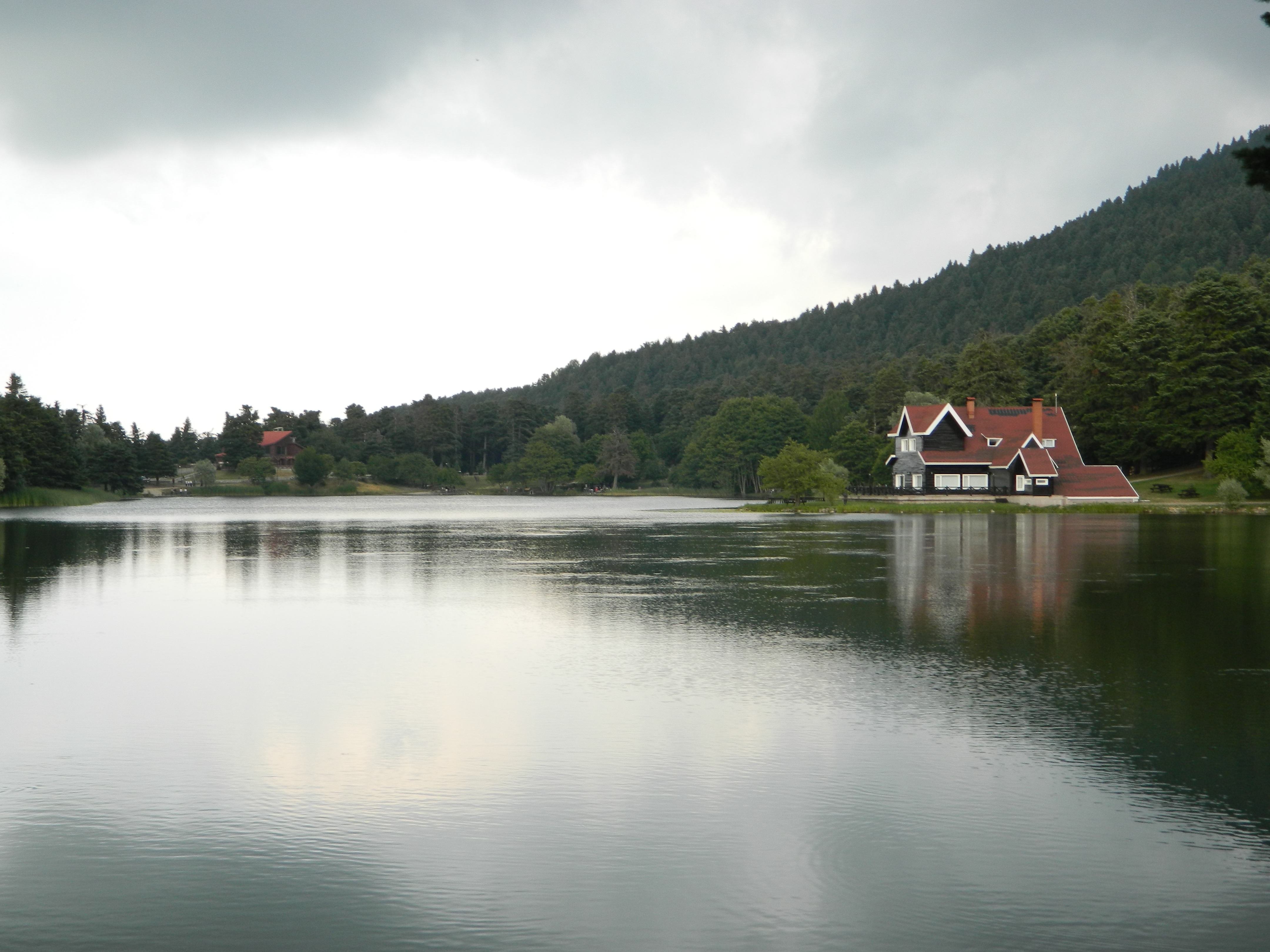 Free image/jpeg, Resolution: 4320x3240, File size: 2.28Mb, building on scenic lake shore, turkey, bolu picture with tags: lake, water, reflection, bolu, turkey, forest, cloudy, building