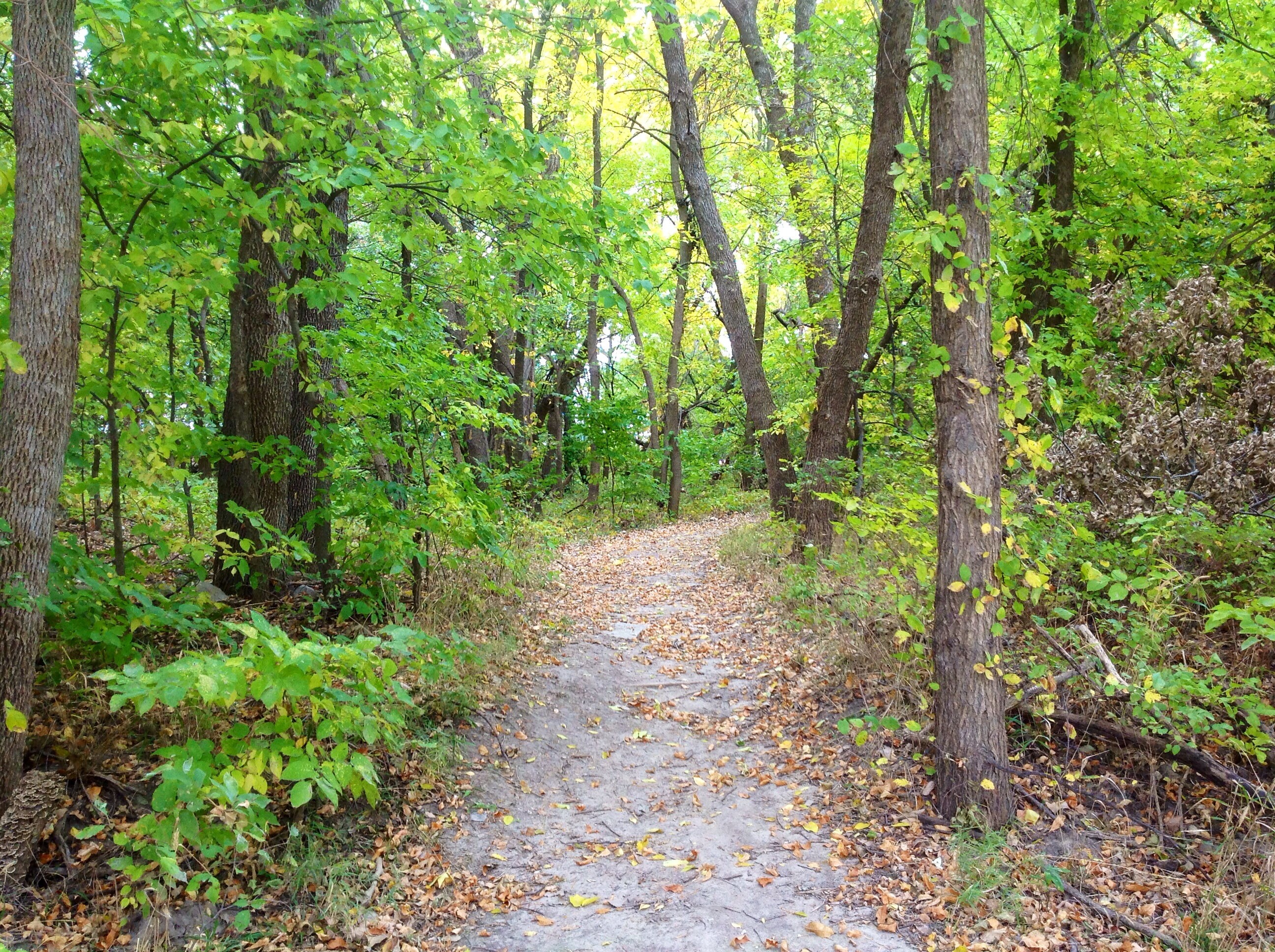 Free image/jpeg, Resolution: 2592x1936, File size: 2.19Mb, walk path in deciduous forest at fall picture with tags: forest, nature, tree, season, outdoor, wood, foliage