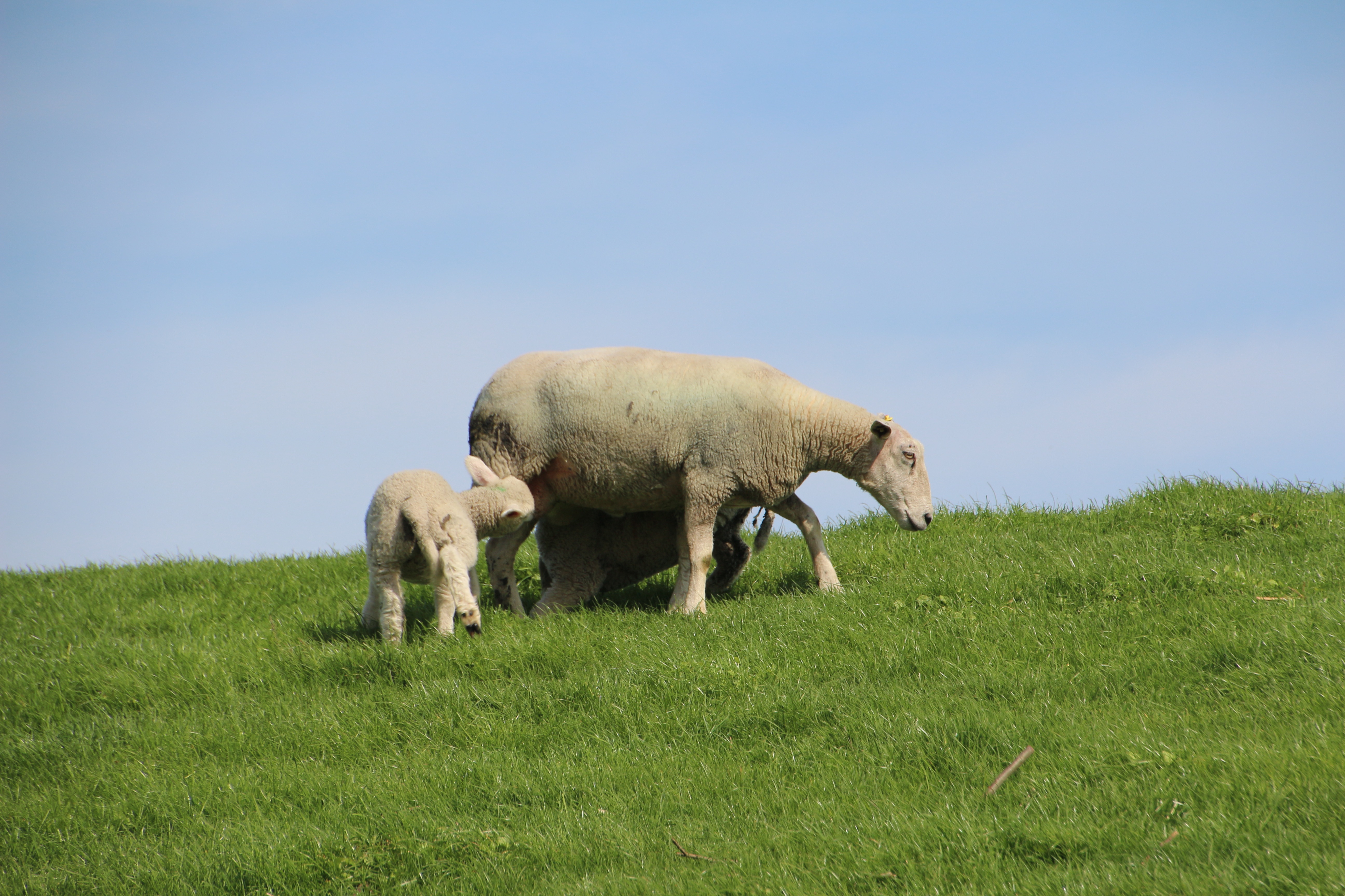 Free image/jpeg, Resolution: 5184x3456, File size: 3.28Mb, sheep with lambs on a green hill picture with tags: wool, lamb, nordfriesland, animals, nature, livestock