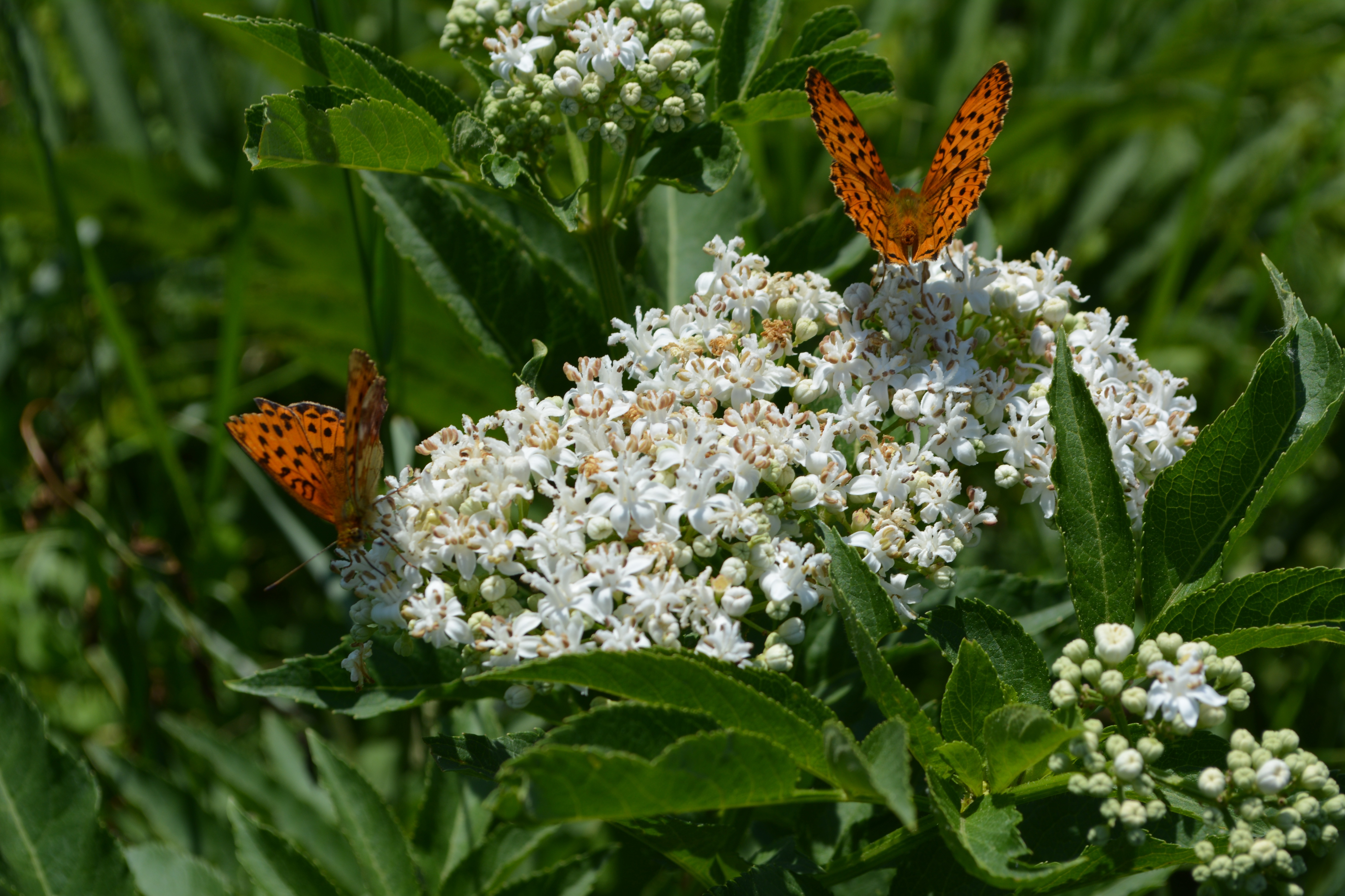 Free image/jpeg, Resolution: 6000x4000, File size: 3.92Mb, two butterflies on a white flower picture with tags: butterfly, coloring, butterflies, white flower, nature, meadow