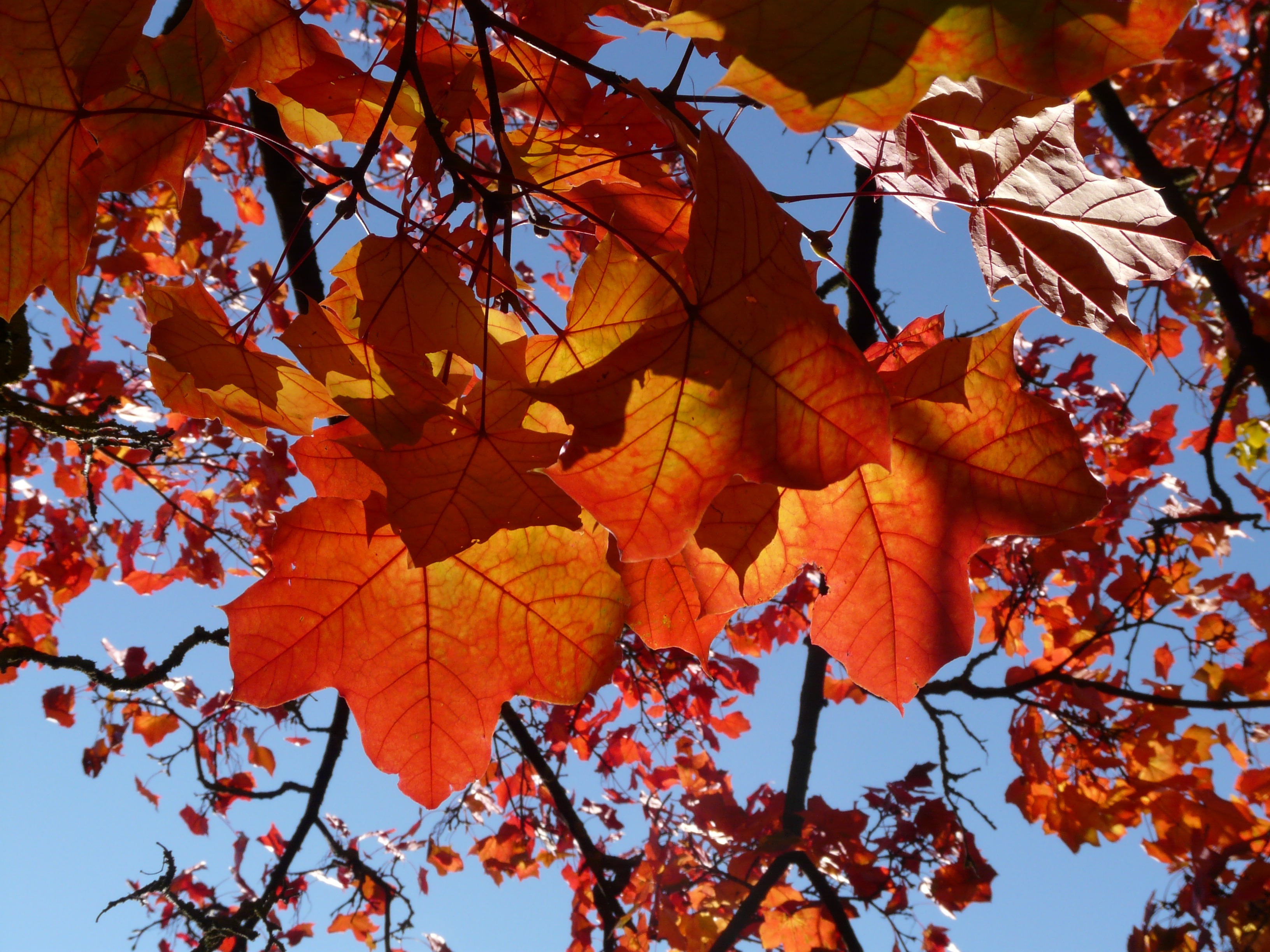 Free image/jpeg, Resolution: 3264x2448, File size: 1.68Mb, maple branches with red leaves at sky picture with tags: tree, fall foliage, autumn, maple leaves, yellow, orange