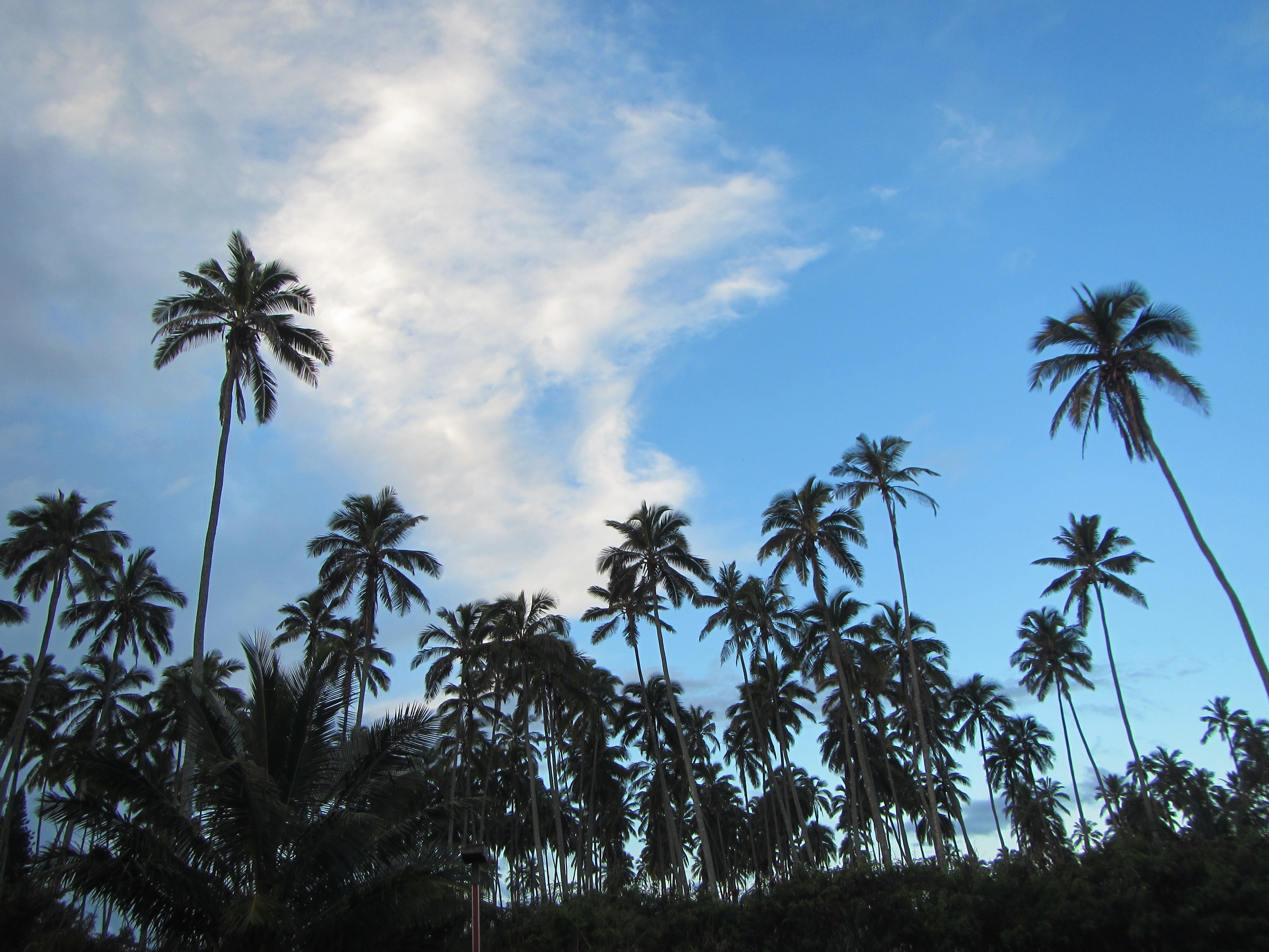 Free image/jpeg, Resolution: 4000x3000, File size: 2.5Mb, coconut palms silhouettes at sky, hawaii picture with tags: hawaii, coconut trees, tropical, clouds, sky