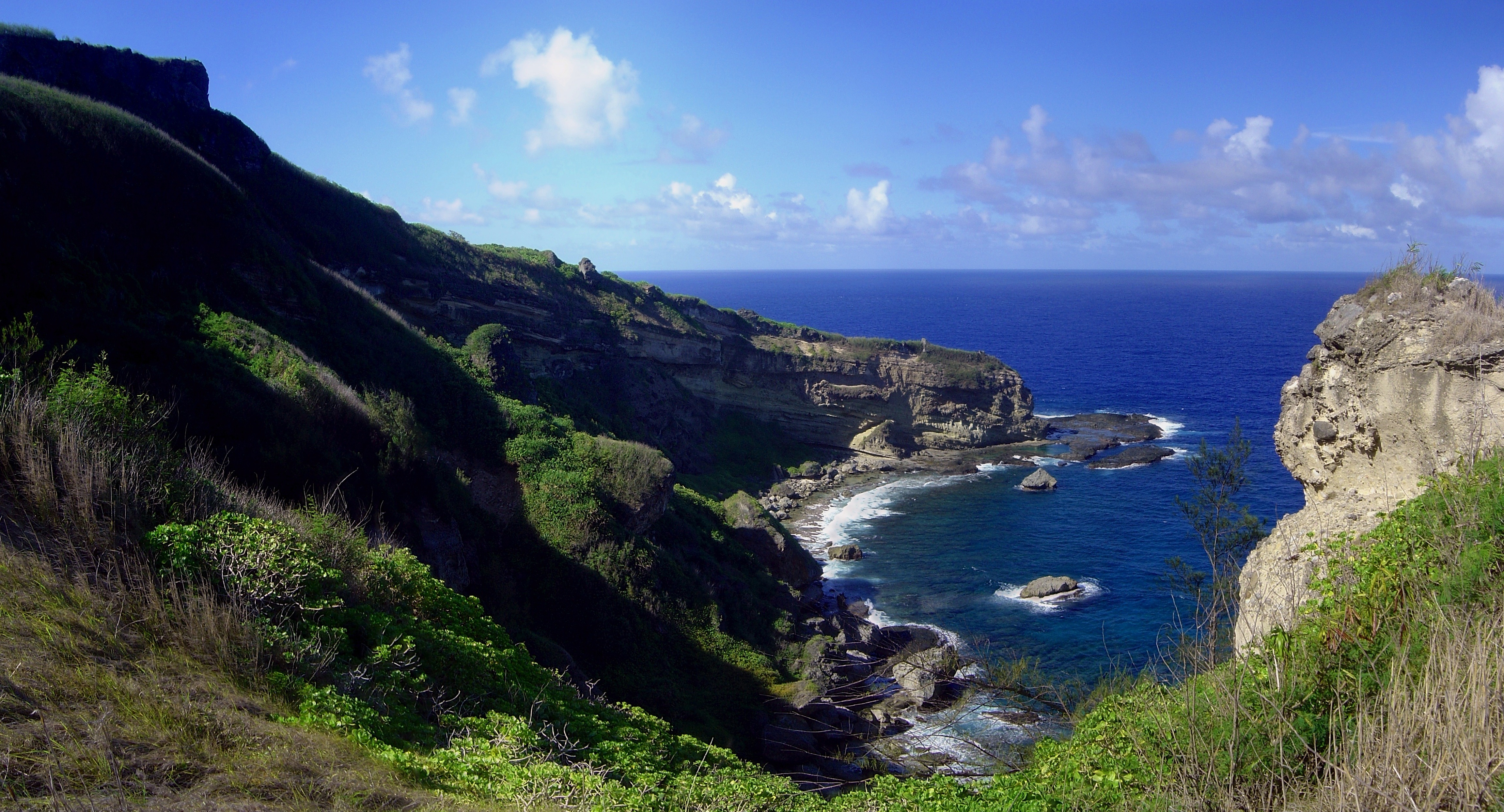 Free image/jpeg, Resolution: 4608x2489, File size: 3.06Mb, Landscape of the saipan picture with tags: saipan, clouds, ocean, shoreline, waves, mountains, ravine, nature