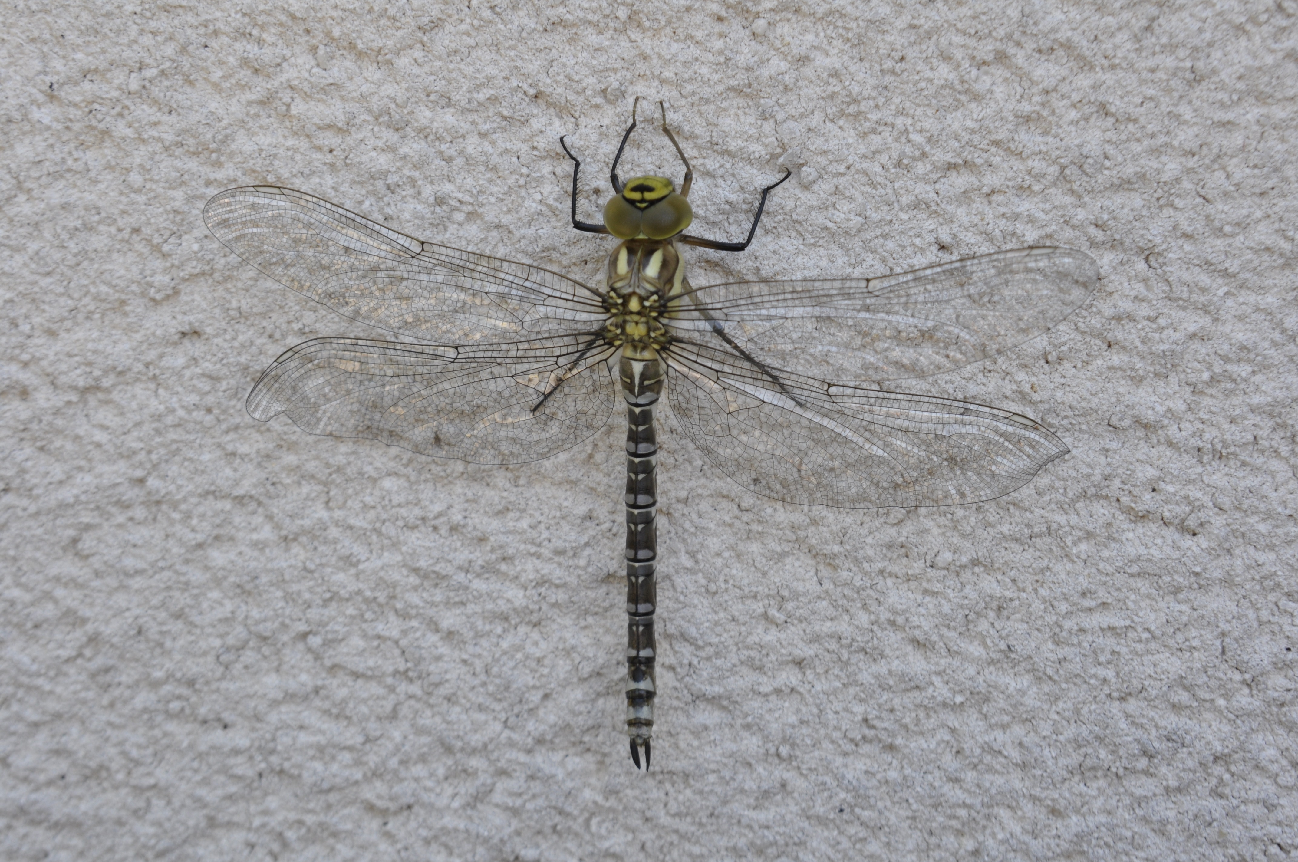 Free image/jpeg, Resolution: 4288x2848, File size: 2.35Mb, Close-up of the colorful dragonfly on a white wall picture with tags: parthenope, dragonfly, nature, insect, summer, close-up, colorful, white wall