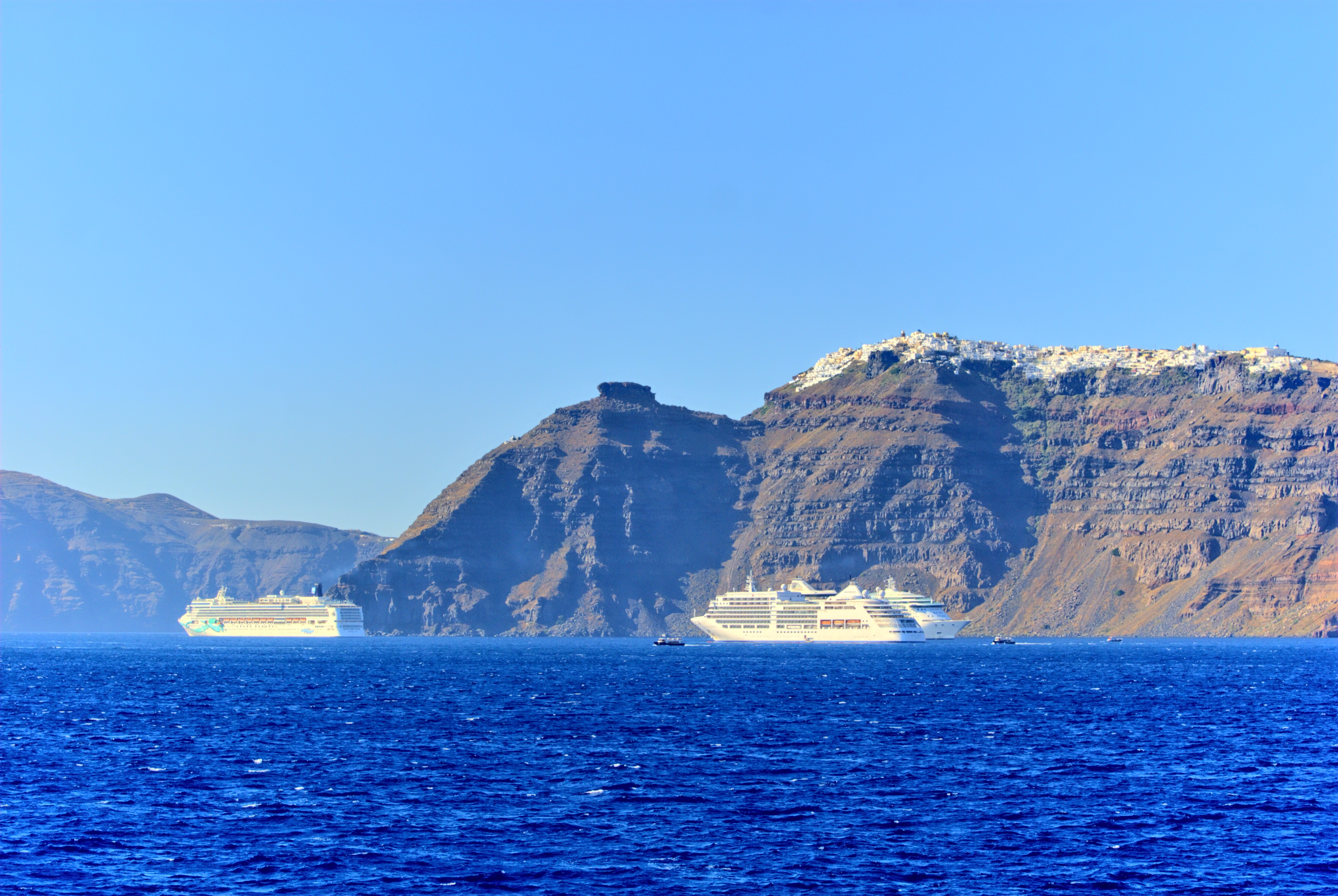Cruise Ships Near Scenic Coast, Greece, Santorini