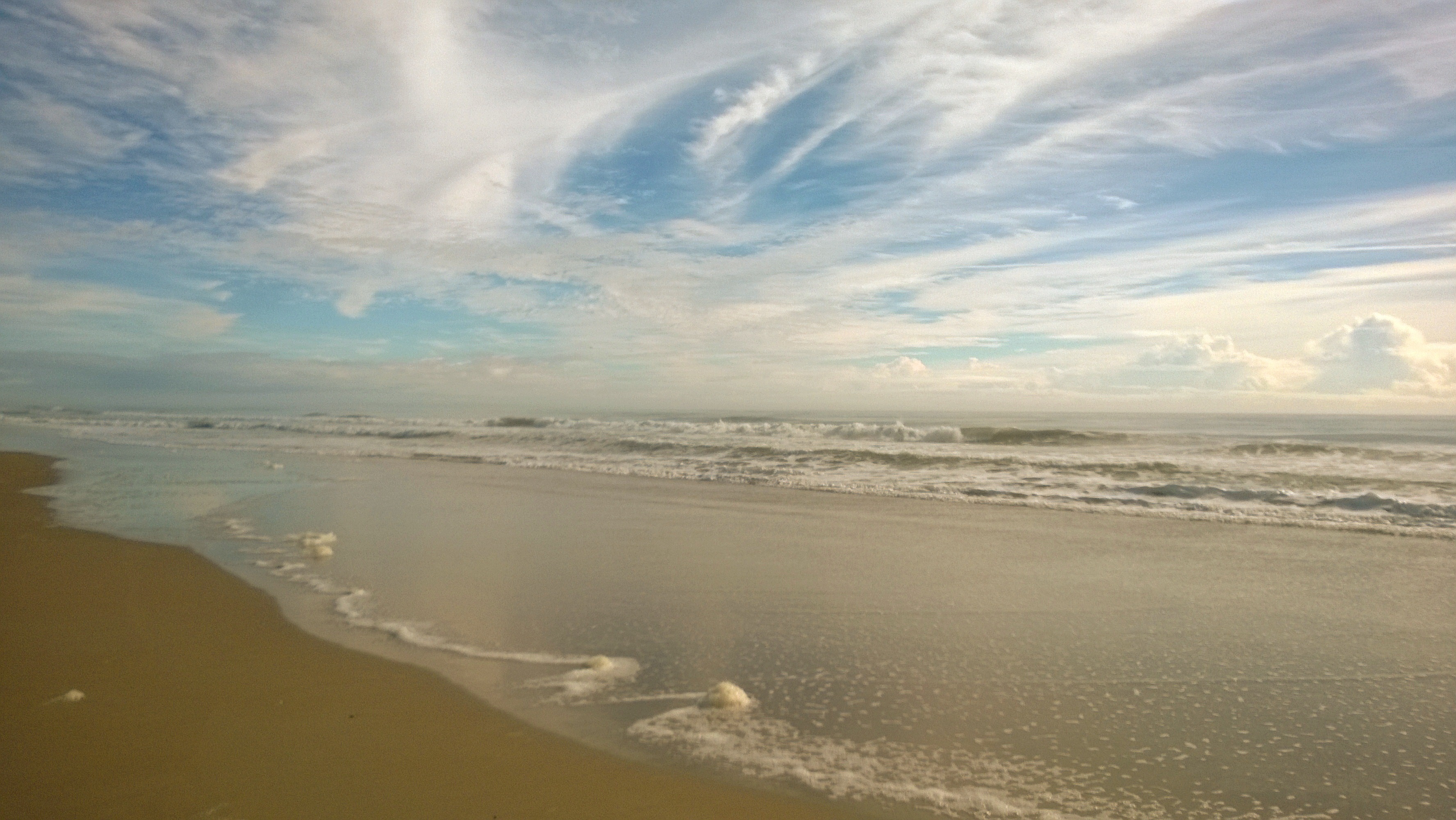 Free image/jpeg, Resolution: 3552x2000, File size: 1.77Mb, sea foam on the ocean beach waves picture with tags: sea foam, clouds, coastal, foam, coast, sand, waves