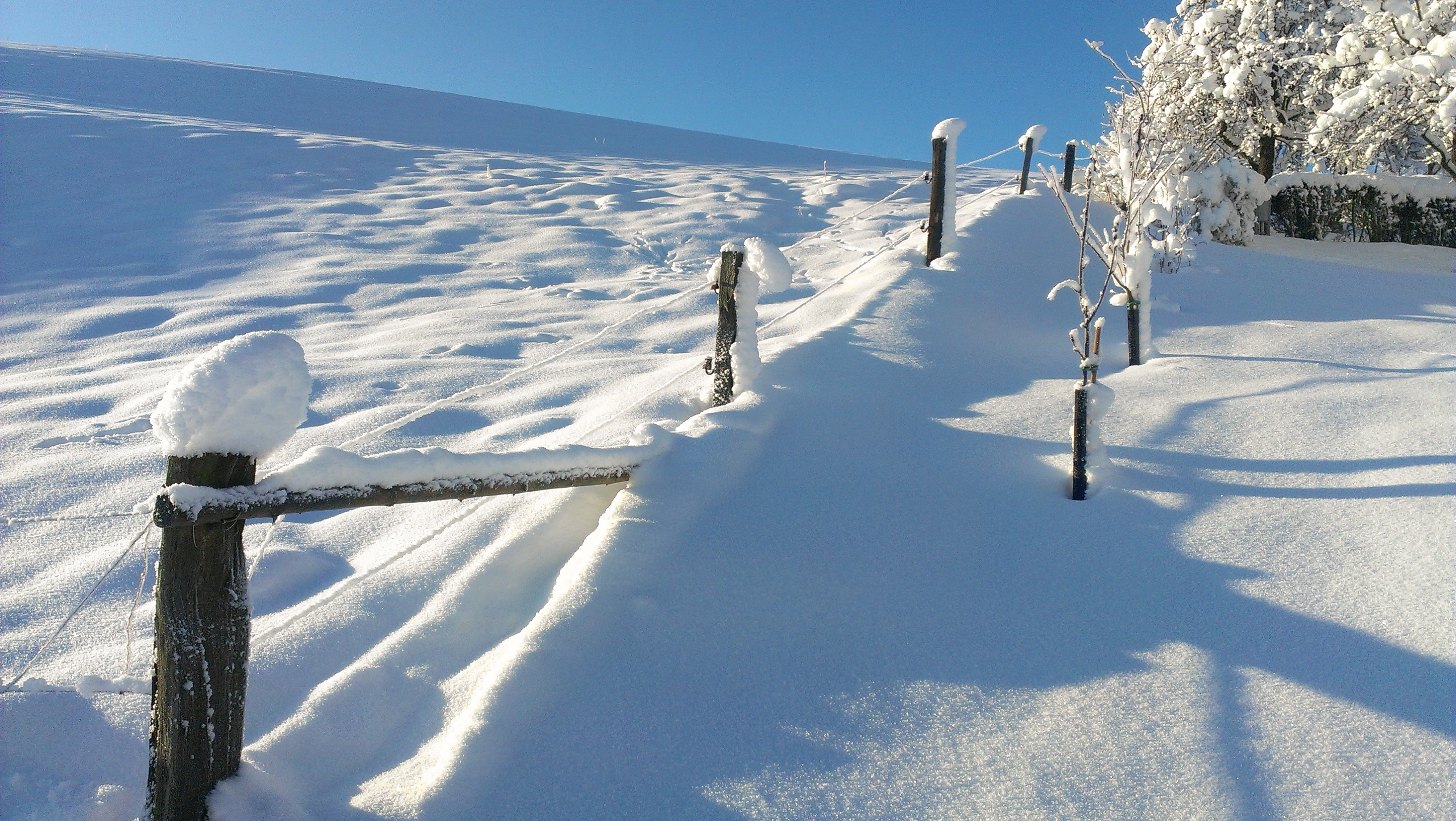 Free image/jpeg, Resolution: 3264x1840, File size: 1.89Mb, unusual beauty snow landscape picture with tags: snow, landscape, fence, cold, white, winter