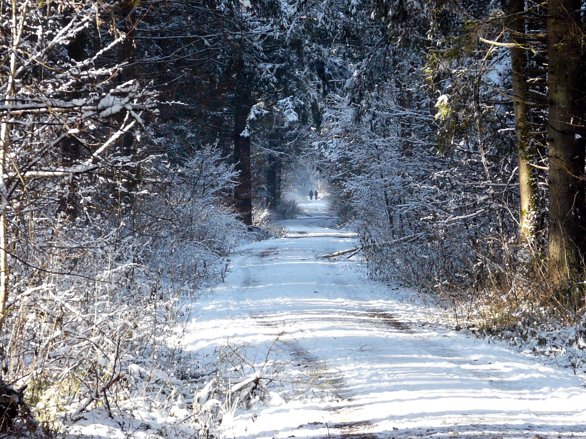 Free image/jpeg, Resolution: 2048x1536, File size: 1.25Mb, wide trail in the winter forest on a sunny day picture with tags: winter forest, away