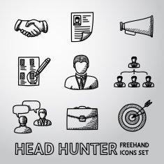 Free image/jpeg, Resolution: 235x235, File size: 23Kb, Set of handdrawn Head Hunter icons - handshake resume mouthpiece picture with tags: Hunting, Occupation, Resume, Office Building, Flat, Solution, Cartoon, Recruit, Team, Expertise, Human Hand, Portfolio, Vector, Headset, Searching, Teamwork, Human Head, Choice, Manager, Computer Icon, Choosing, People, hire, Wealth, Aspirations, freehand, handdrawn, Office Int