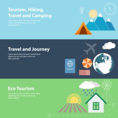 Flat Vector Banners With Tourism Vacation Camping Concepts