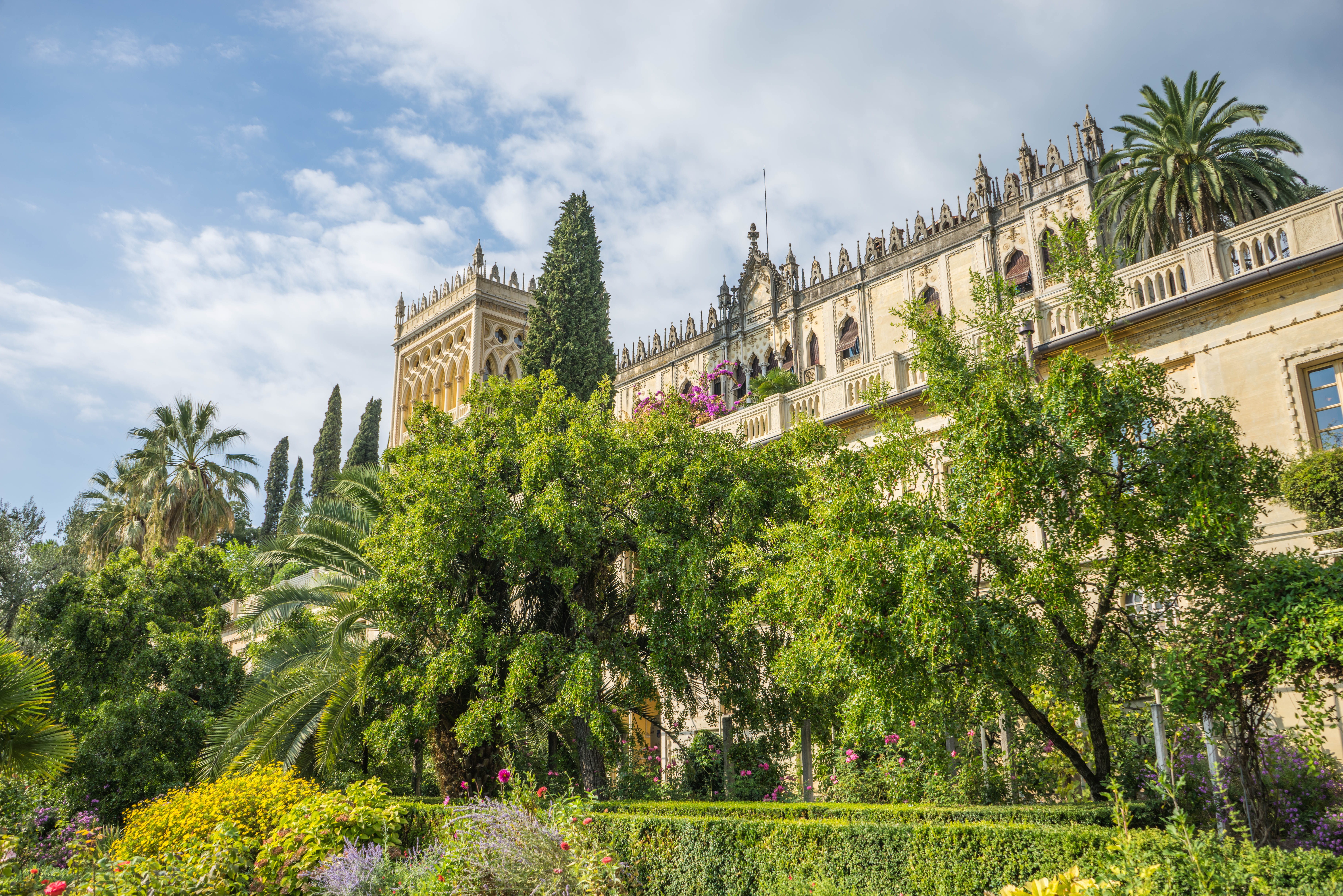 Free image/jpeg, Resolution: 7360x4912, File size: 7.4Mb, isola del garda castle tropical garden scene picture with tags: isola del garda, garden, flowers, italy, landscape, building, architecture, castle