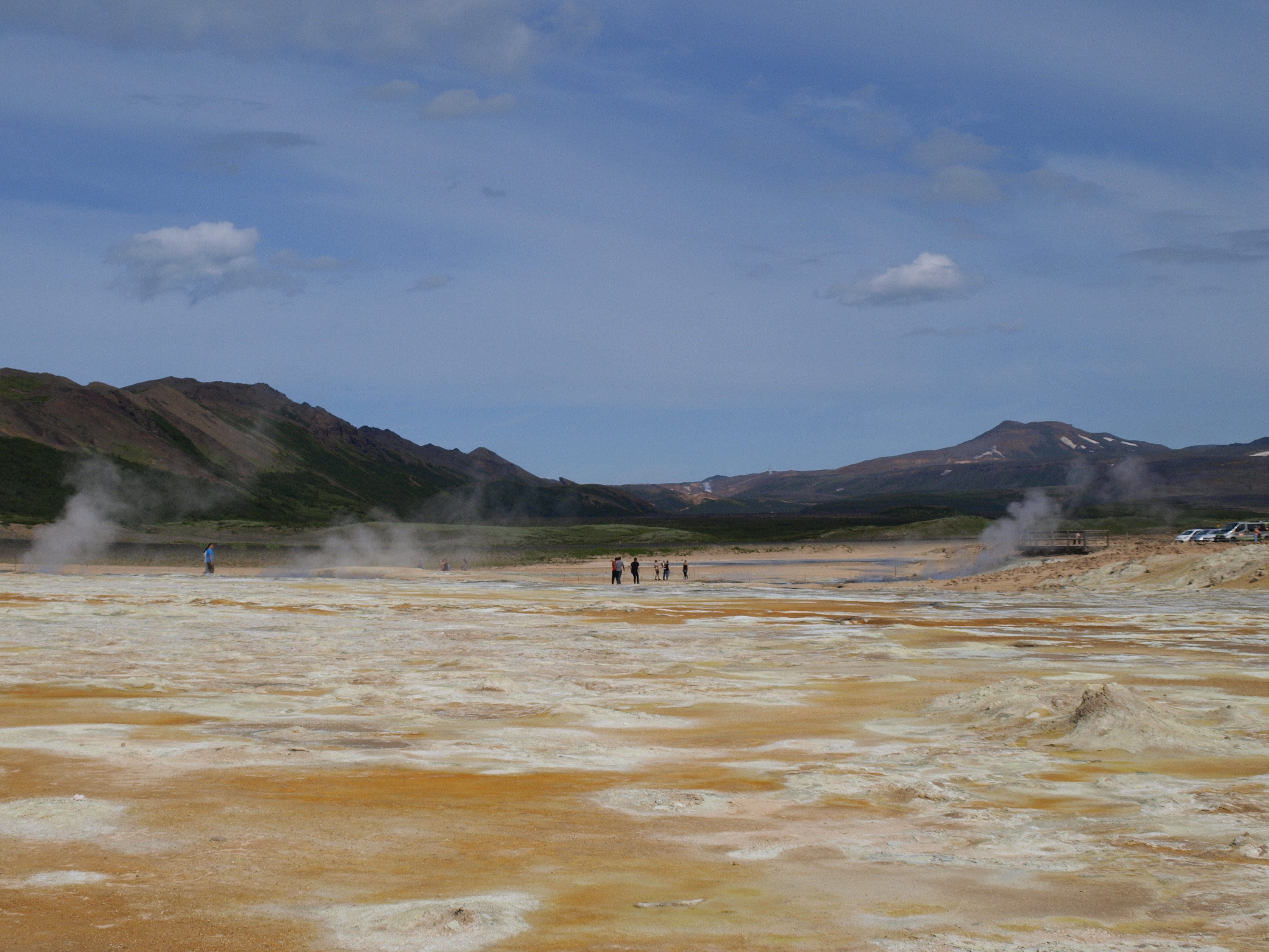Free image/jpeg, Resolution: 3648x2736, File size: 1.51Mb, thermal springs in valley, iceland picture with tags: thermal springs, geothermal, iceland, landscape, volcanic, valley, steam