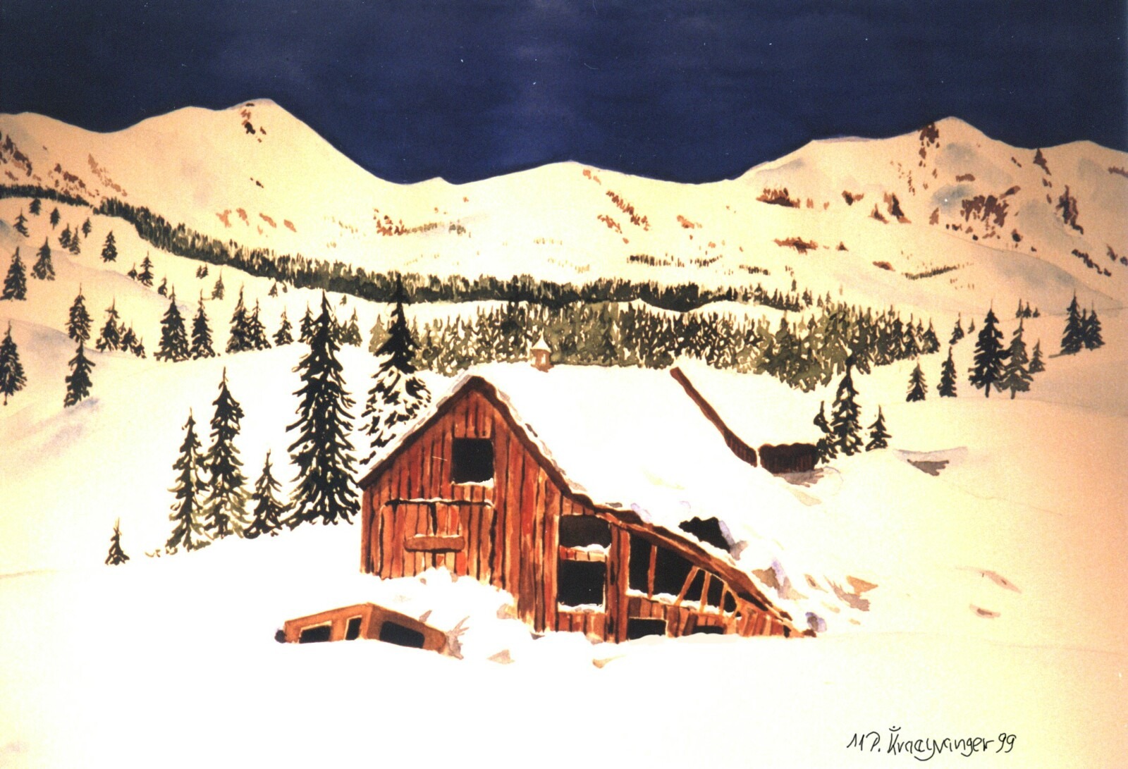 Free image/jpeg, Resolution: 1600x1091, File size: 382Kb, watercolour painting picture with tags: watercolour, painting, winter, snow