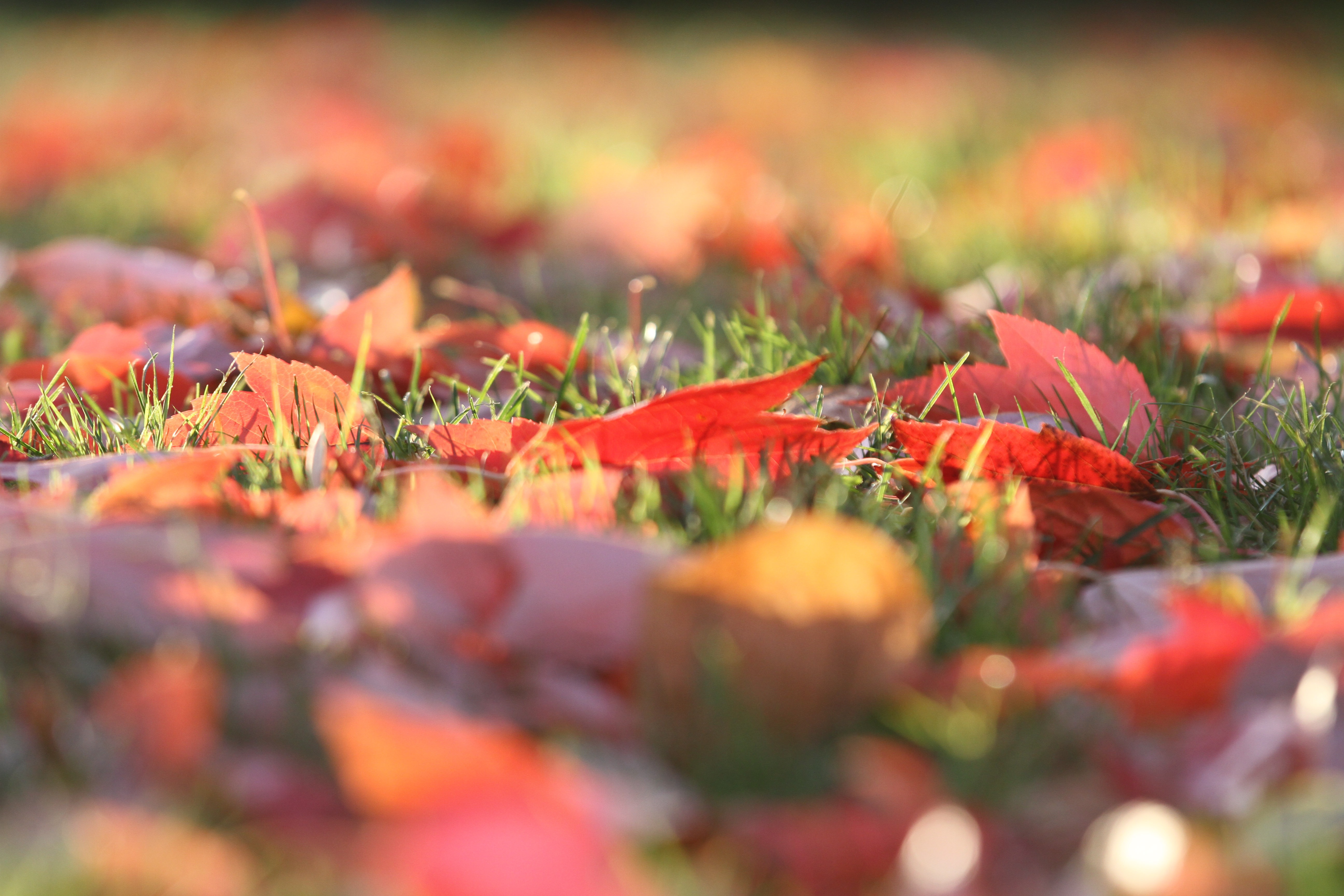 Free image/jpeg, Resolution: 5184x3456, File size: 1.82Mb, colorful autumn leaves on green grass close up picture with tags: fall, autumn, leaves, leaf, yellow, orange, green, nature