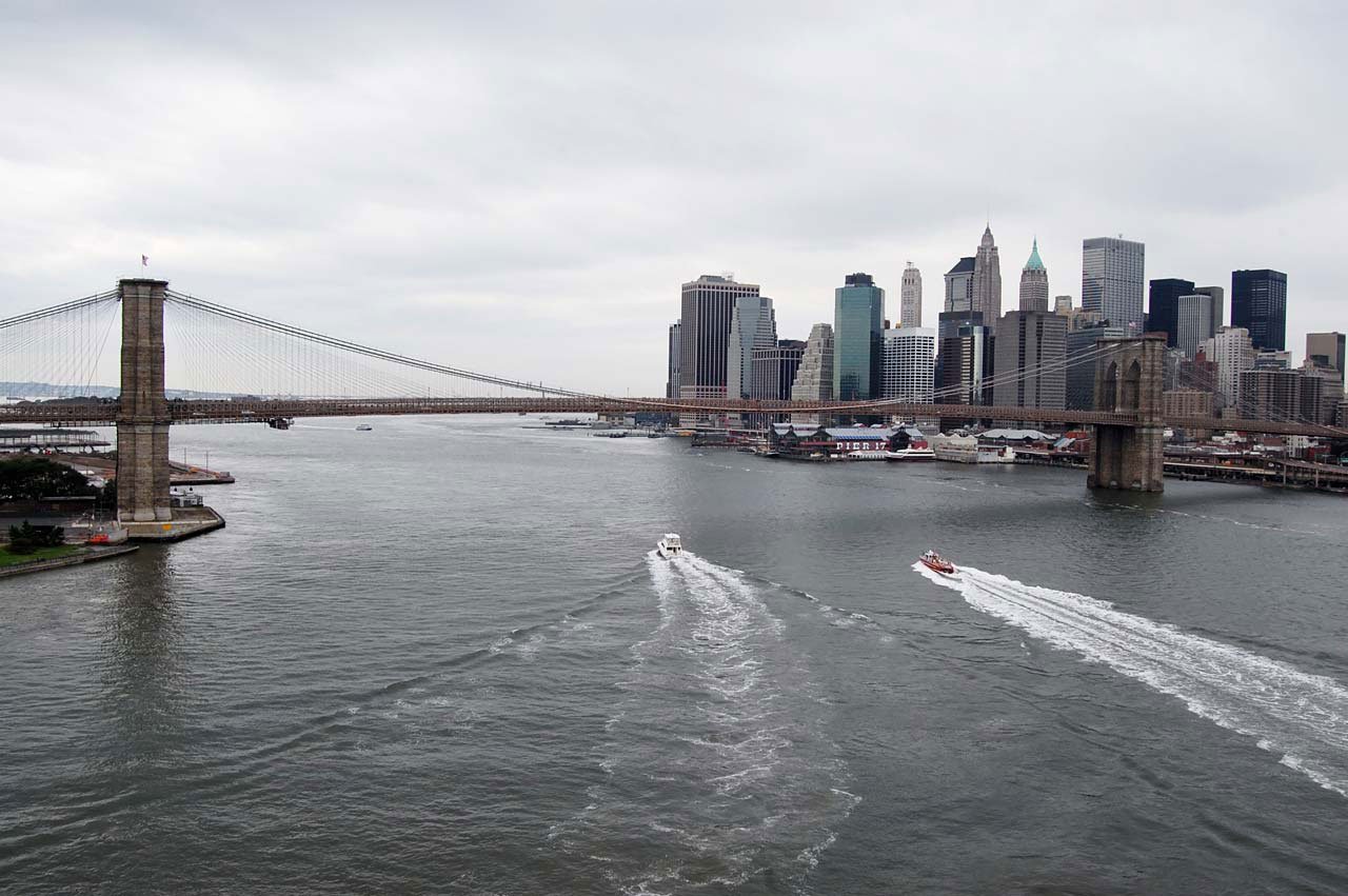 Free image/jpeg, Resolution: 1280x851, File size: 177Kb, aerial view of Brooklyn bridge picture with tags: brooklyn, bridge, boat, yacht, building, architecture