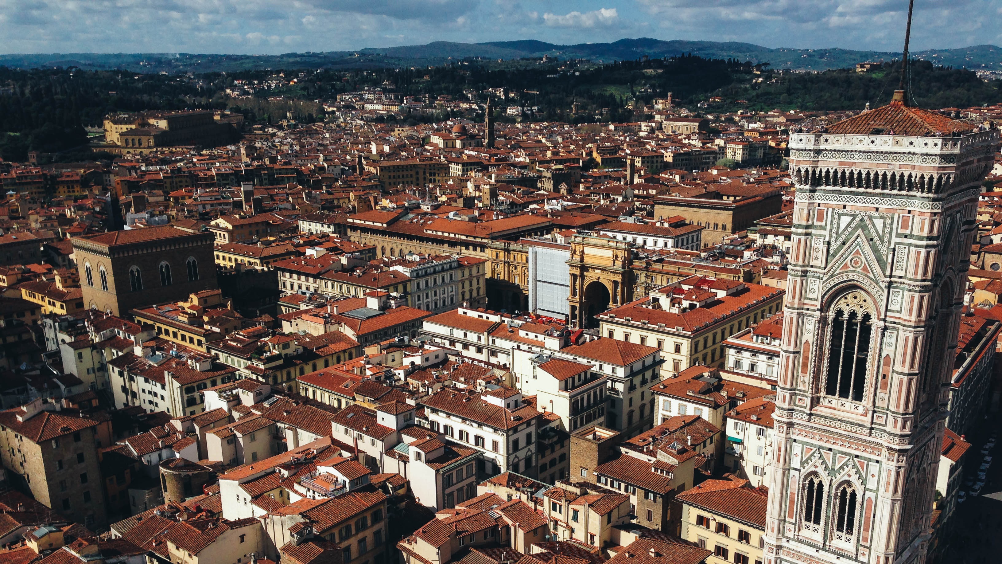 Free image/jpeg, Resolution: 3264x1836, File size: 1.58Mb, top view of city with gothic Giotto’s bell tower, italia, florence picture with tags: city, town, antique, architecture, building