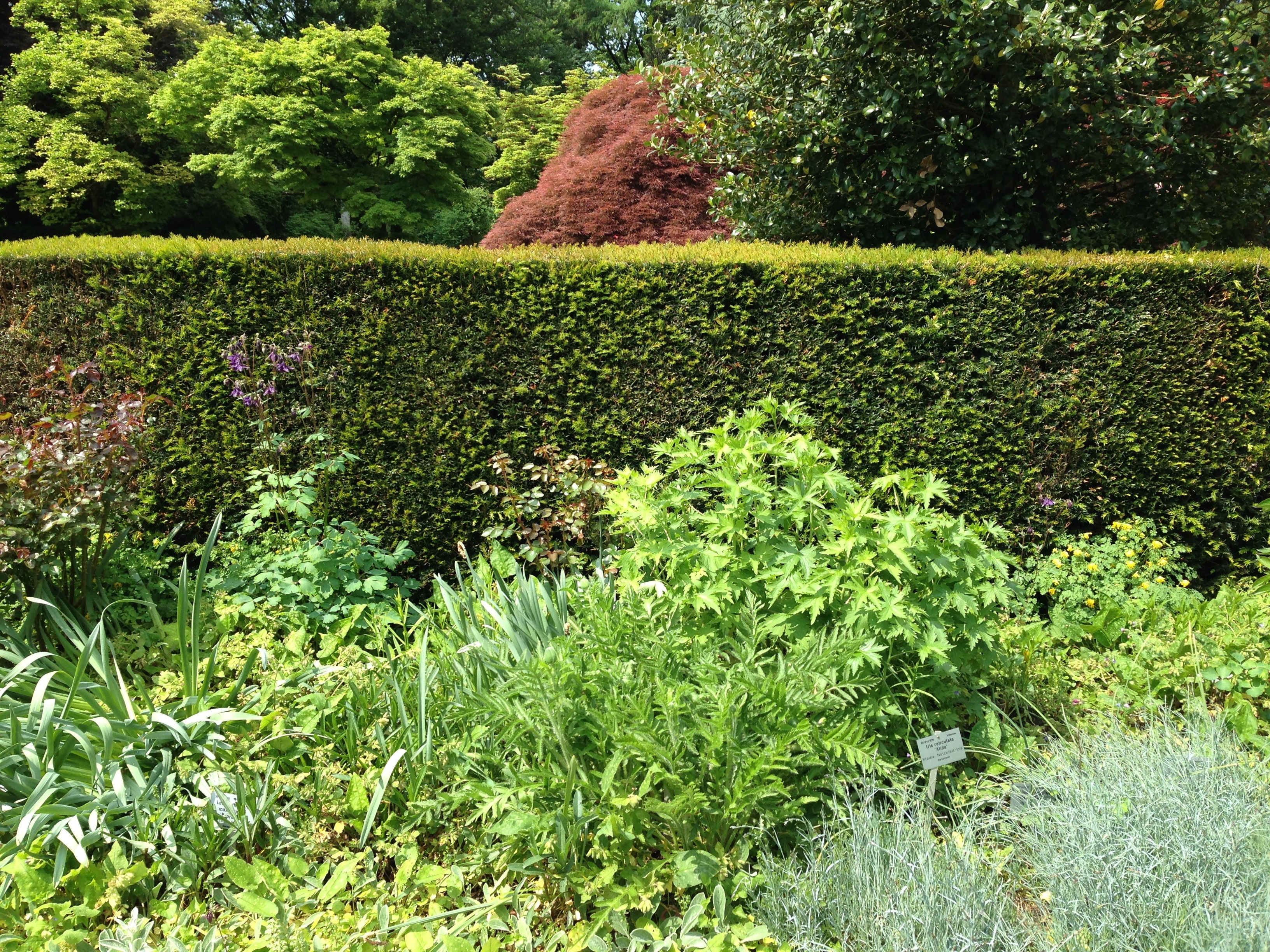 Green plant near bushes in a botanical garden