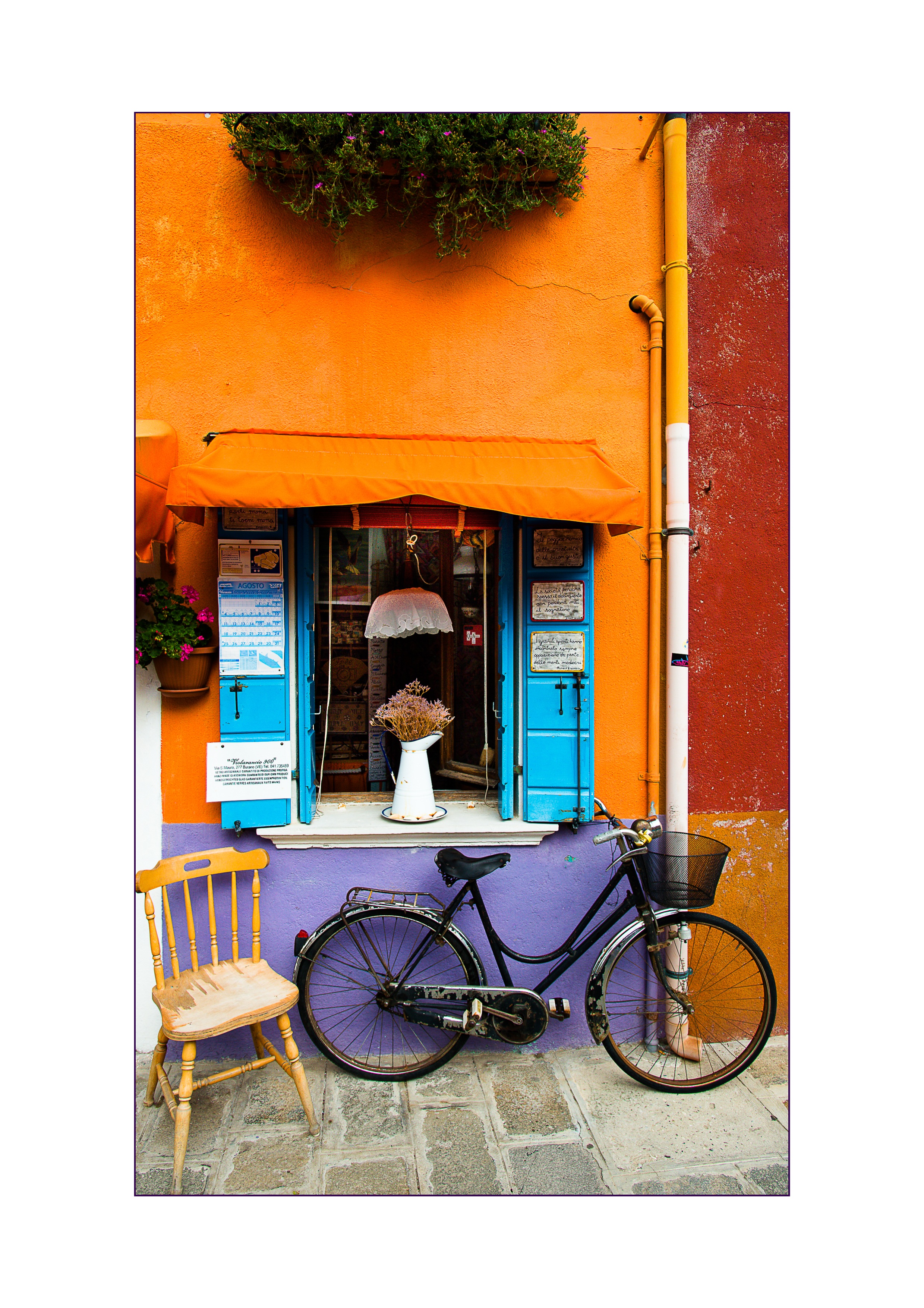 Free image/jpeg, Resolution: 2479x3508, File size: 2.45Mb, vintage black bike near colorful facade picture with tags: bike, wheel, leisure, road, colorful