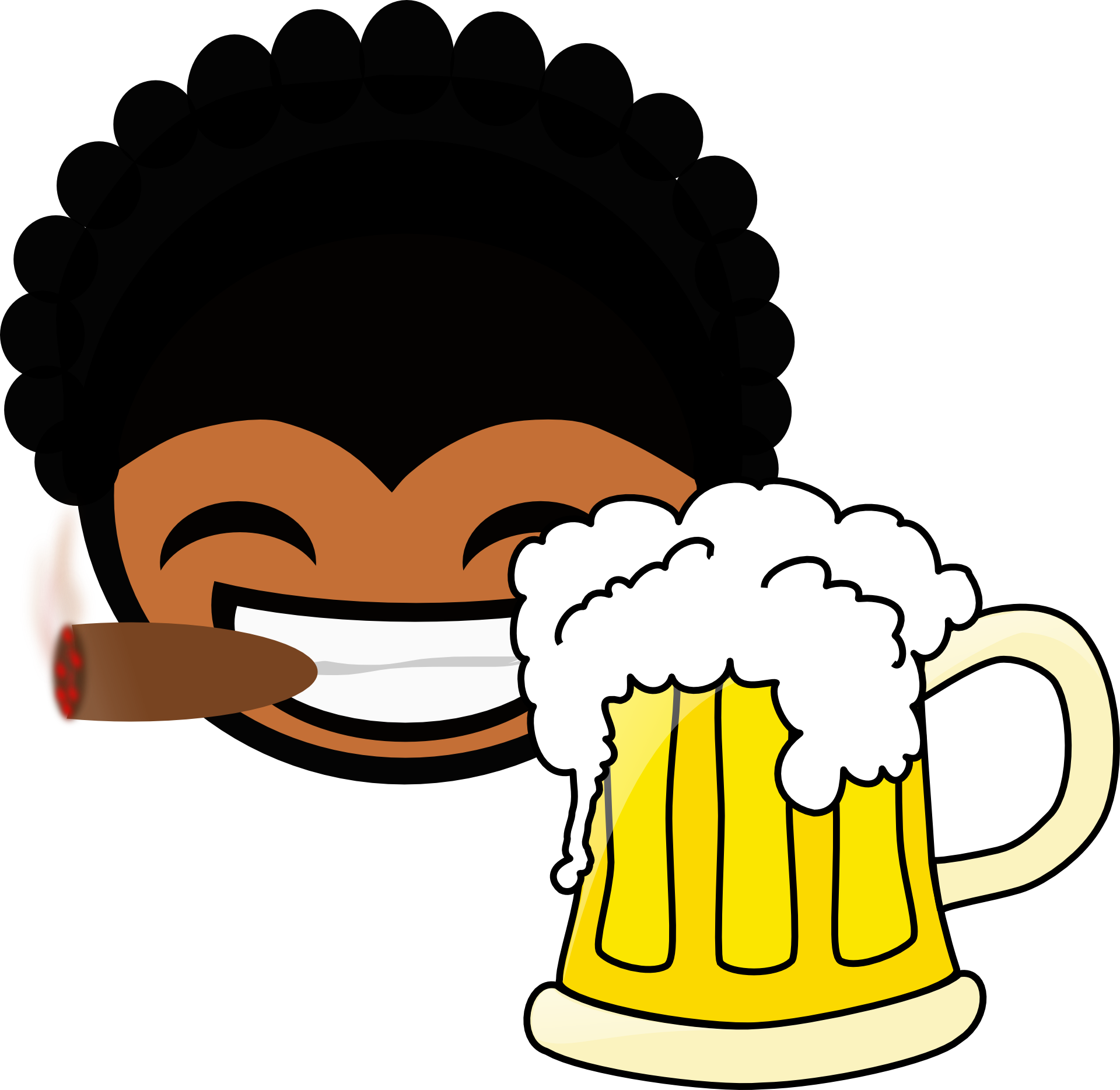 Free image/png, Resolution: 1920x1868, File size: 277Kb, black man smoking cigar and foaming beer in mug, illustration picture with tags: black, beer, cigar, smoke, smoking, party, happy