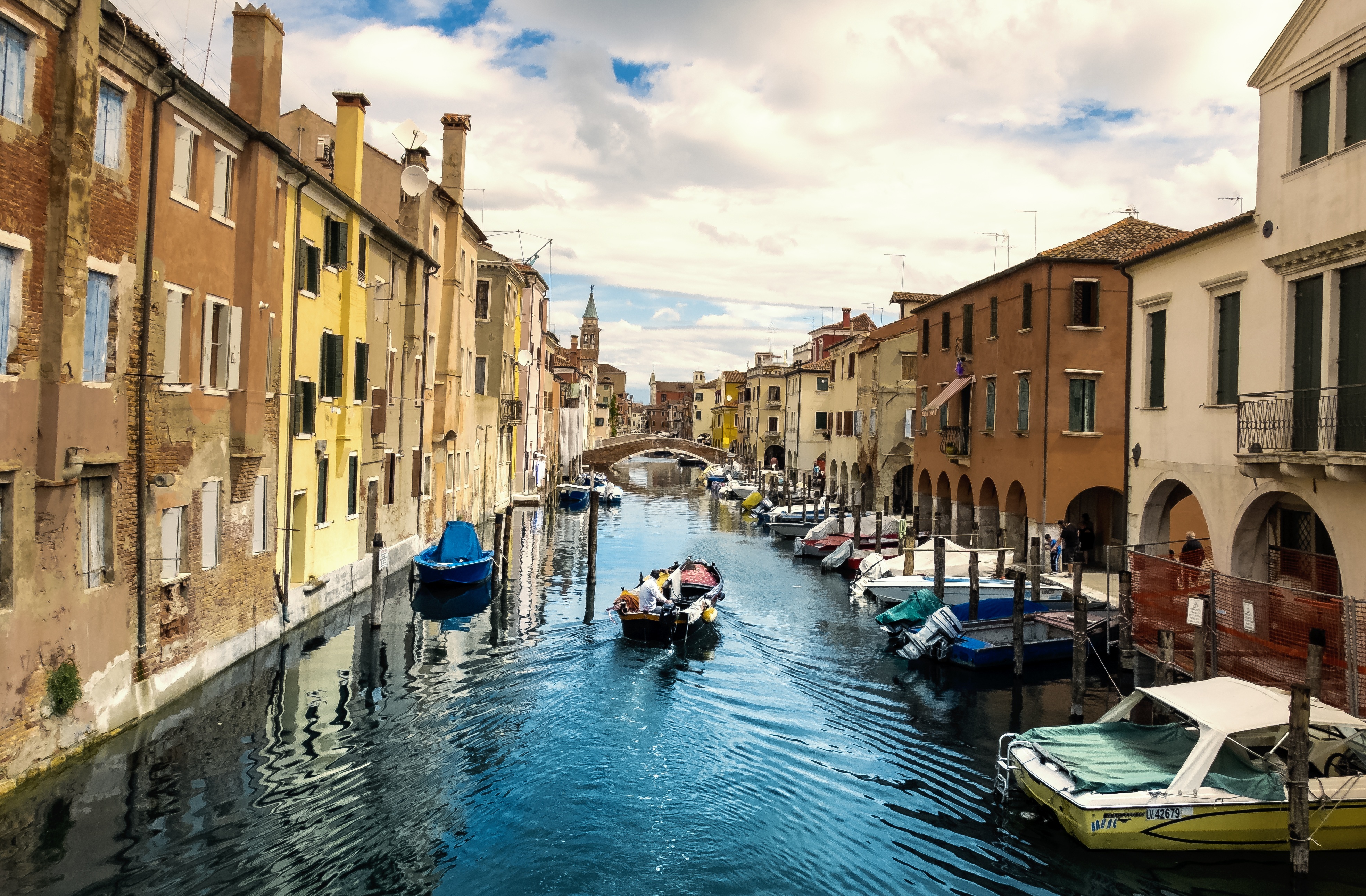 Free image/jpeg, Resolution: 3933x2580, File size: 3.63Mb, Photo of waterway with boats in Italy picture with tags: italy, chiorggia, boot, homes, city, water, atmosphere
