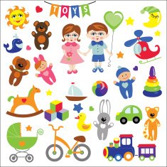 Free image/jpeg, Resolution: 235x235, File size: 51Kb, Baby girl and boy with toy icons eps picture with tags: Baking, Equipment, Cute, Cartoon, Train, Computer Icon, Animated Cartoon, Rocking Horse, Bright, Multi Colored, Yellow, Balloon, Domestic Cat, Purple, Baby Shower, Girls, Icon Set, Small, Brightly Lit, Heart Shape, Sport, vector illustration, Boll, Ball, Teddy Bear, Pyramid