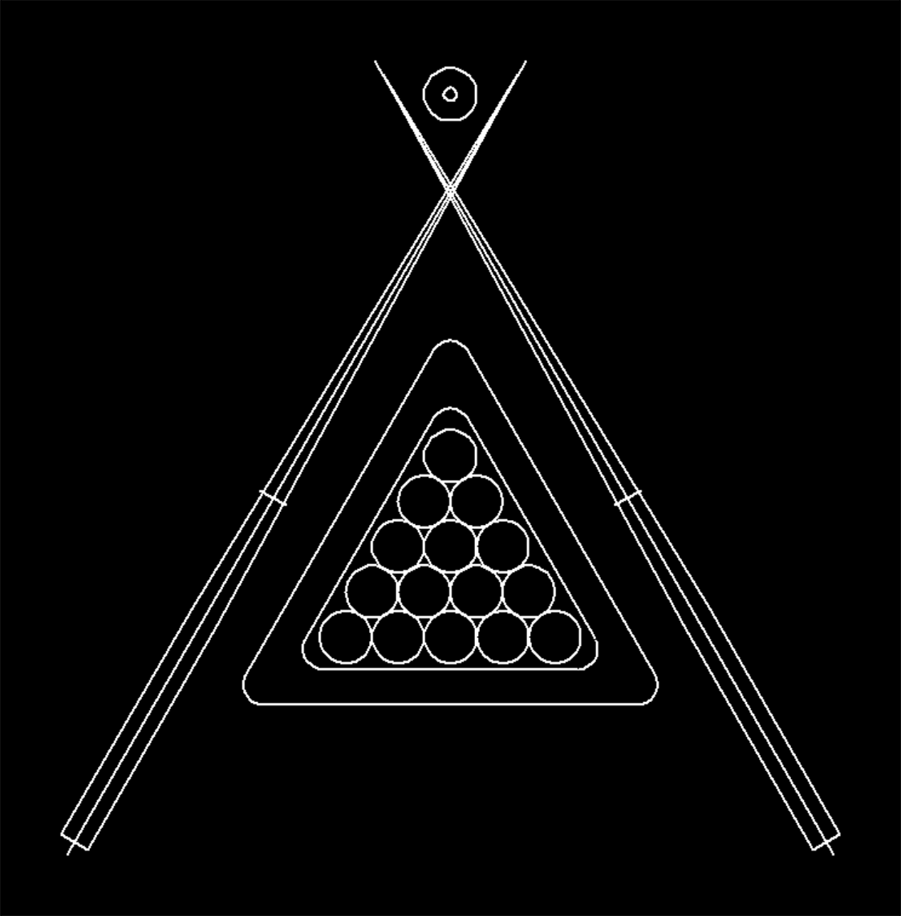 Drawn billiard balls and two cues