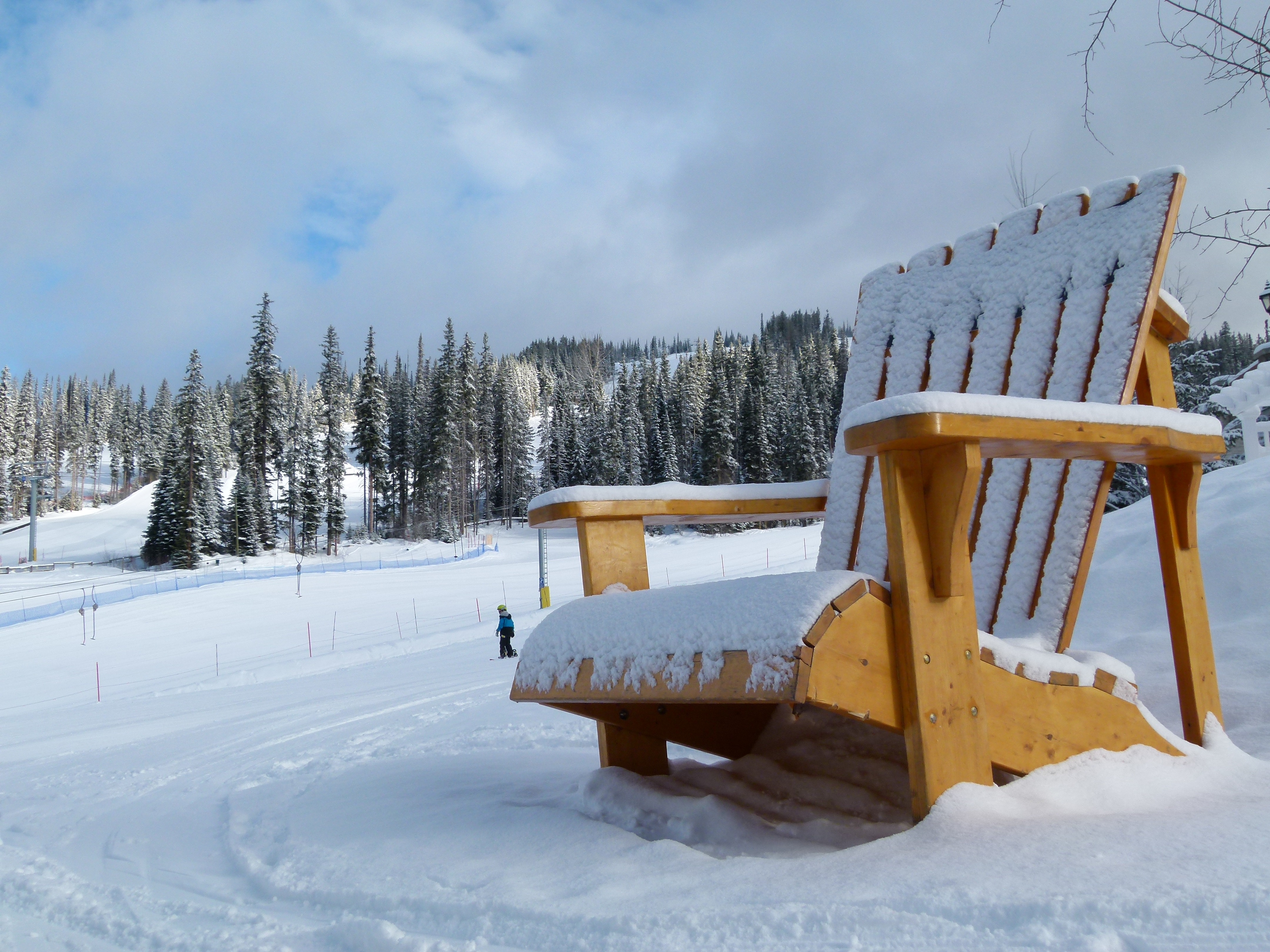 Free image/jpeg, Resolution: 4320x3240, File size: 2.58Mb, wooden bench on the mountain top picture with tags: sun peaks, sport, activity, snow, scenery
